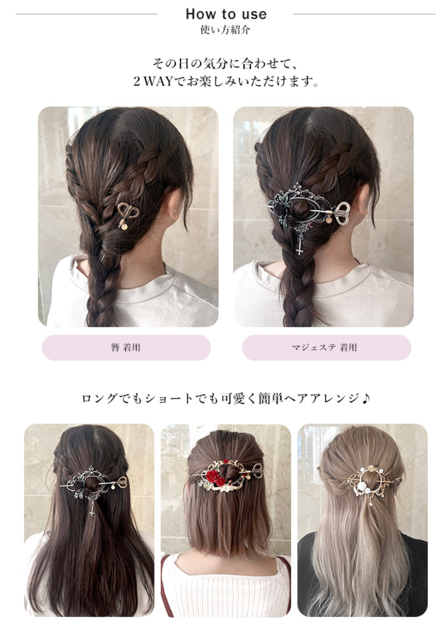 不僅可以作為單獨的簪使用,也可與飾品組合成優雅的華麗髮飾。一插入頭髮,無論是短髮或長髮,都能瞬間增添華麗感,完美再現角色的精緻氛圍。