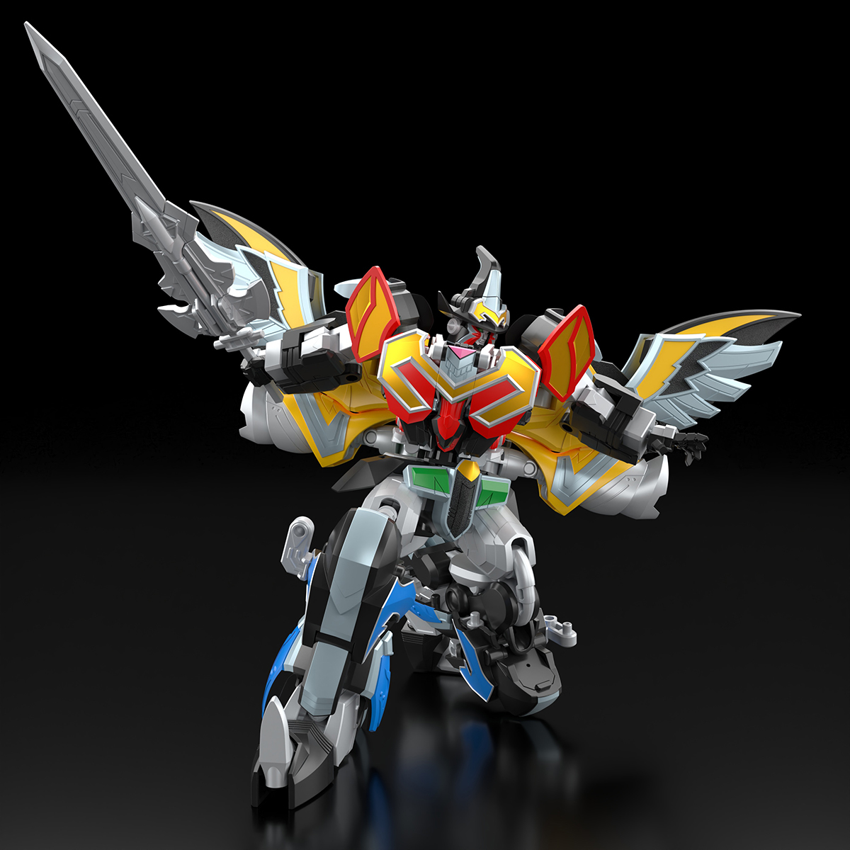 由魔法鳳凰以外的四機魔龍合體而成的「魔法聖龍」擁有相當魄力的造型與尺寸,在各機可動性大幅提升的影響下,讓魔法聖龍也能把玩出更具躍動感的姿勢。雙翼零件與當年 DX 玩具相同經過磨砂處理提升質感,背部也能讓魔法鳳凰搭乘。