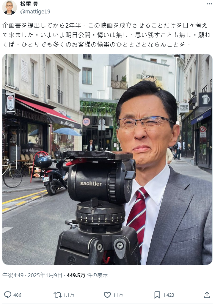 在上映的前一日,松重豐就在 X 上發文,表示從提案企劃書到現在,已經過了兩年半的時間。這段期間,每天心心念念的,只有讓這部電影順利完成。終於,明天就要上映了。沒有遺憾,也沒有什麼放不下的心願。只希望這部作品能成為更多觀眾快樂時光的一部分!