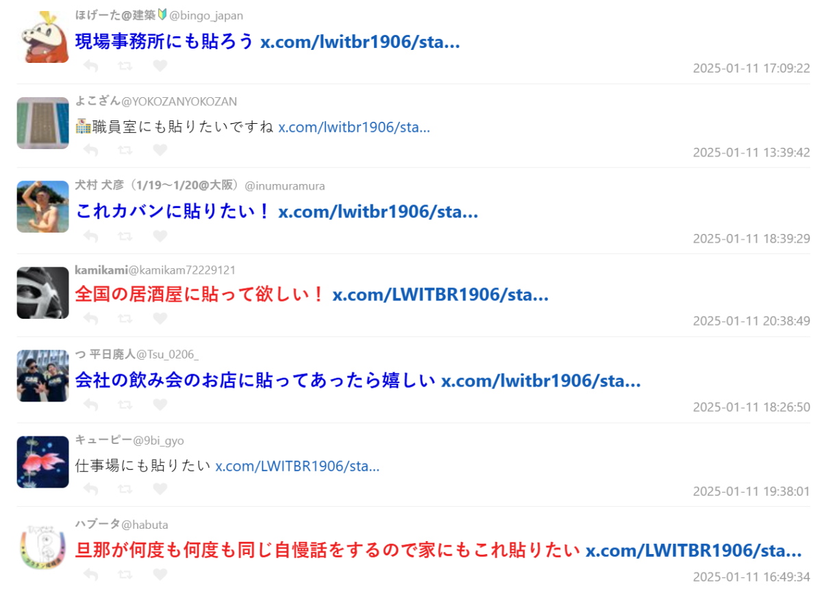 結果不少網友表示「我公司也想貼」、「拜託職員室也要貼」、「全國居酒屋都給我貼起來」、「公司聚餐的店都應該有一個」、「我家老公老是吹噓,我家也想貼 www」。