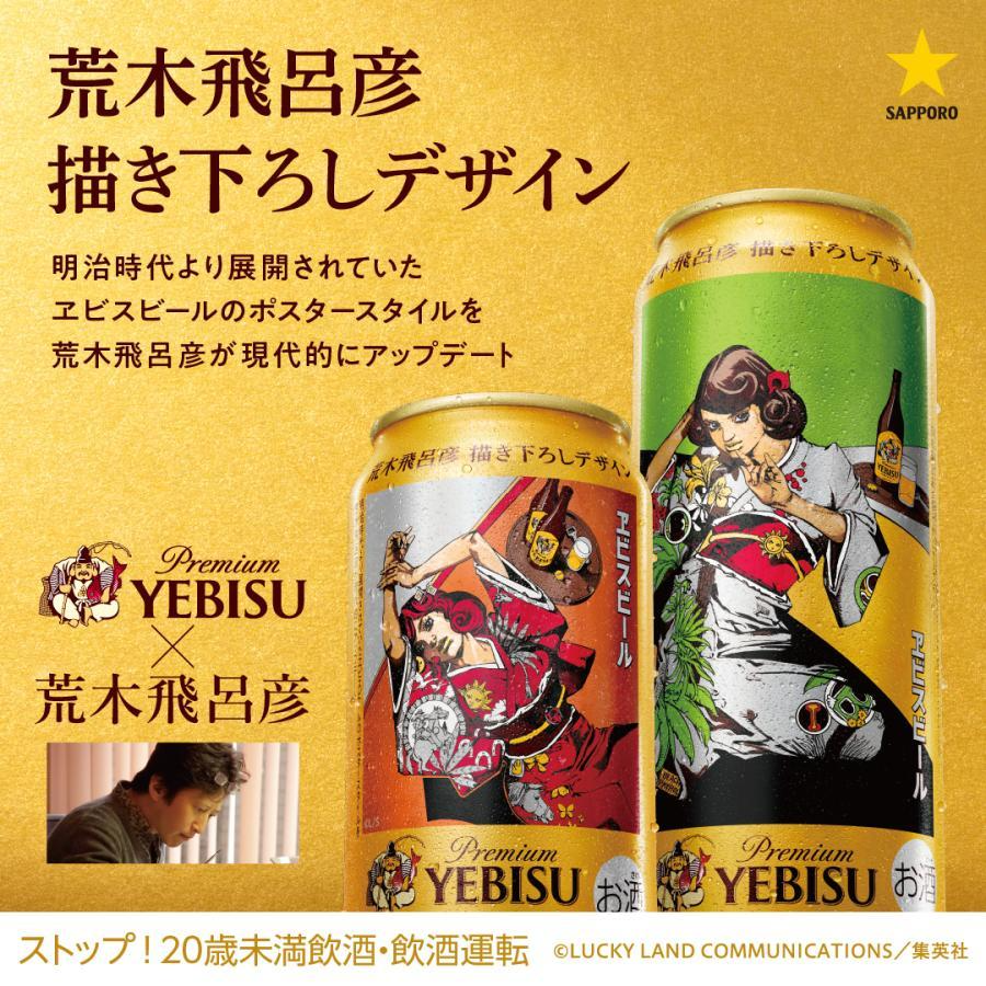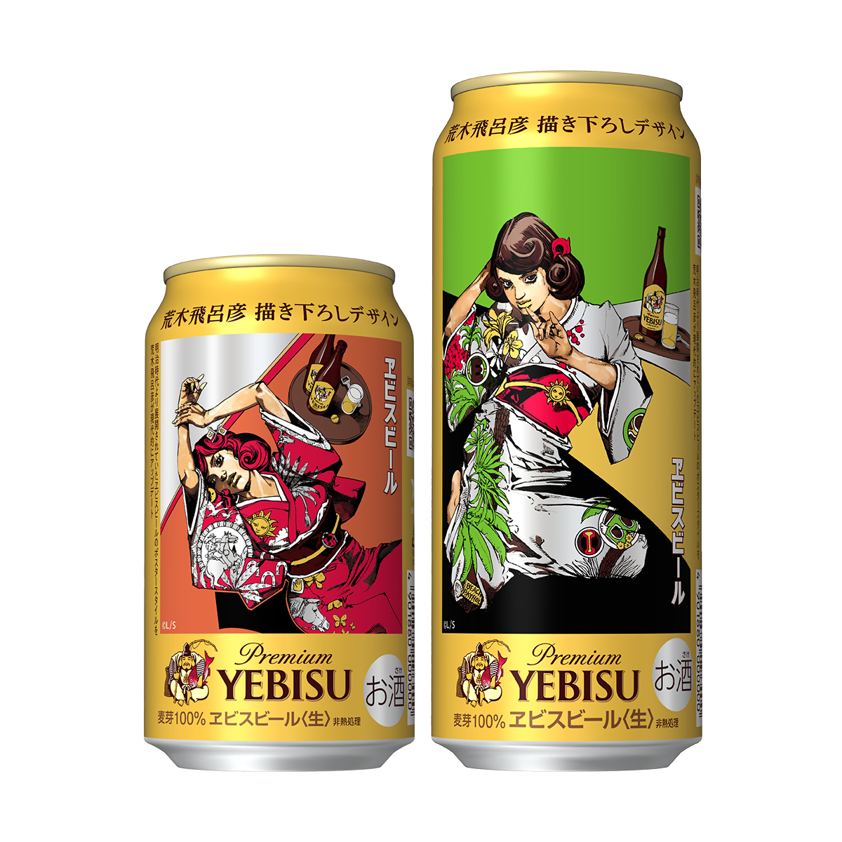 這次的聯名罐裝,是與魅力征服日本及全球讀者的荒木飛呂彥合作推出。包裝採用荒木飛呂彥全新繪製的現代化插畫,重新詮釋明治時代以來惠比壽啤酒的經典美人畫海報,展現極具時尚感的設計。