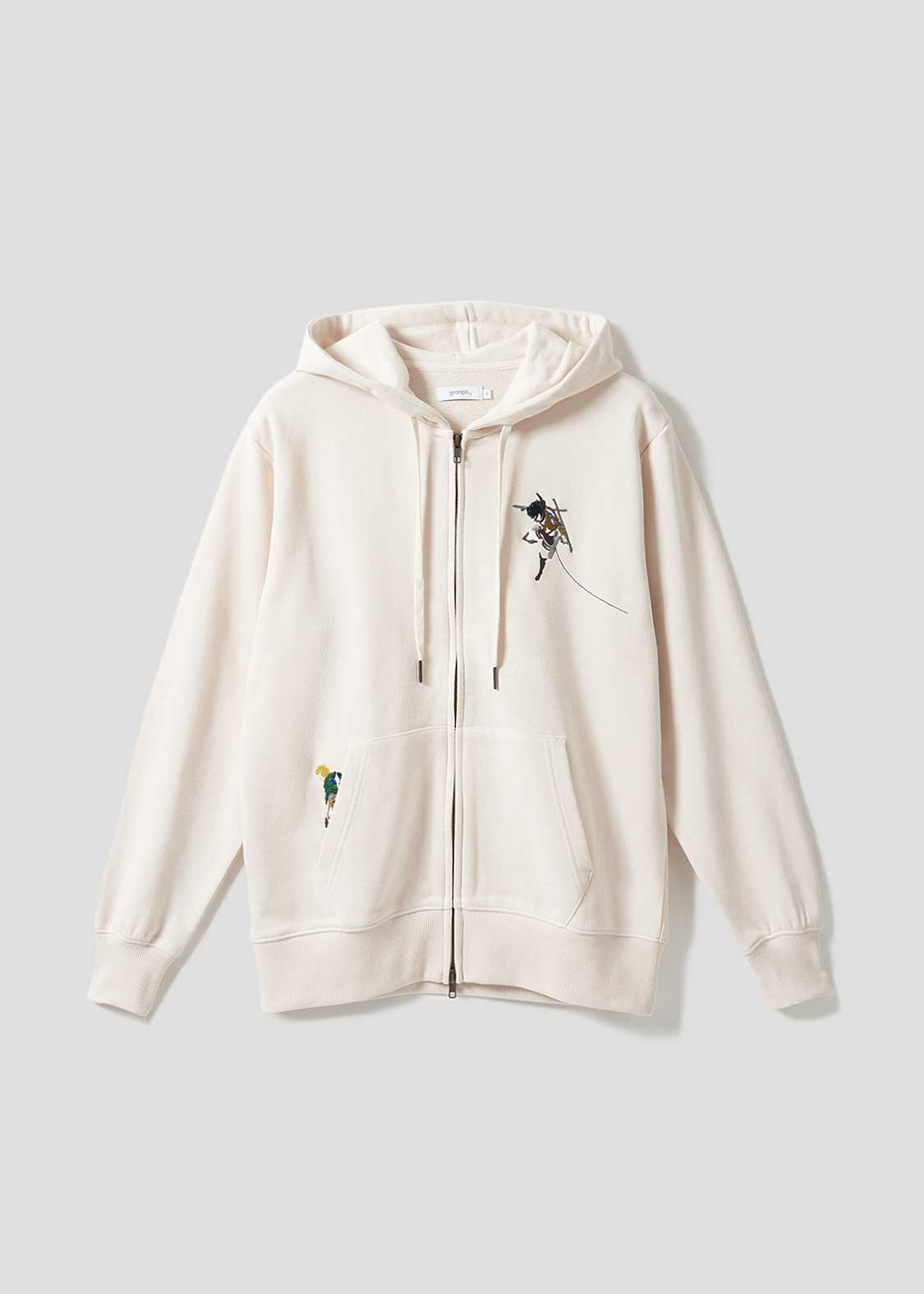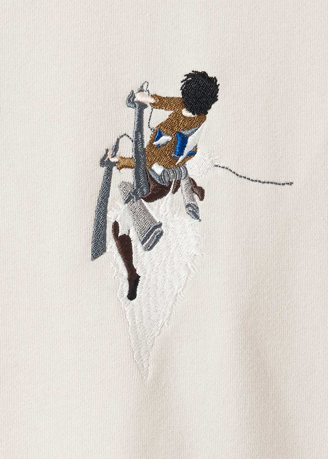 這次與《進擊的巨人》聯名,以漫畫中的插圖為主來設計,推出了多款服飾商品,設計上也採用作品中的世界觀與人物特色來點綴,加上部分細節使用刺繡製作,不僅保有獨特設計也具有作品韻味,各位粉絲可別錯過啦 !