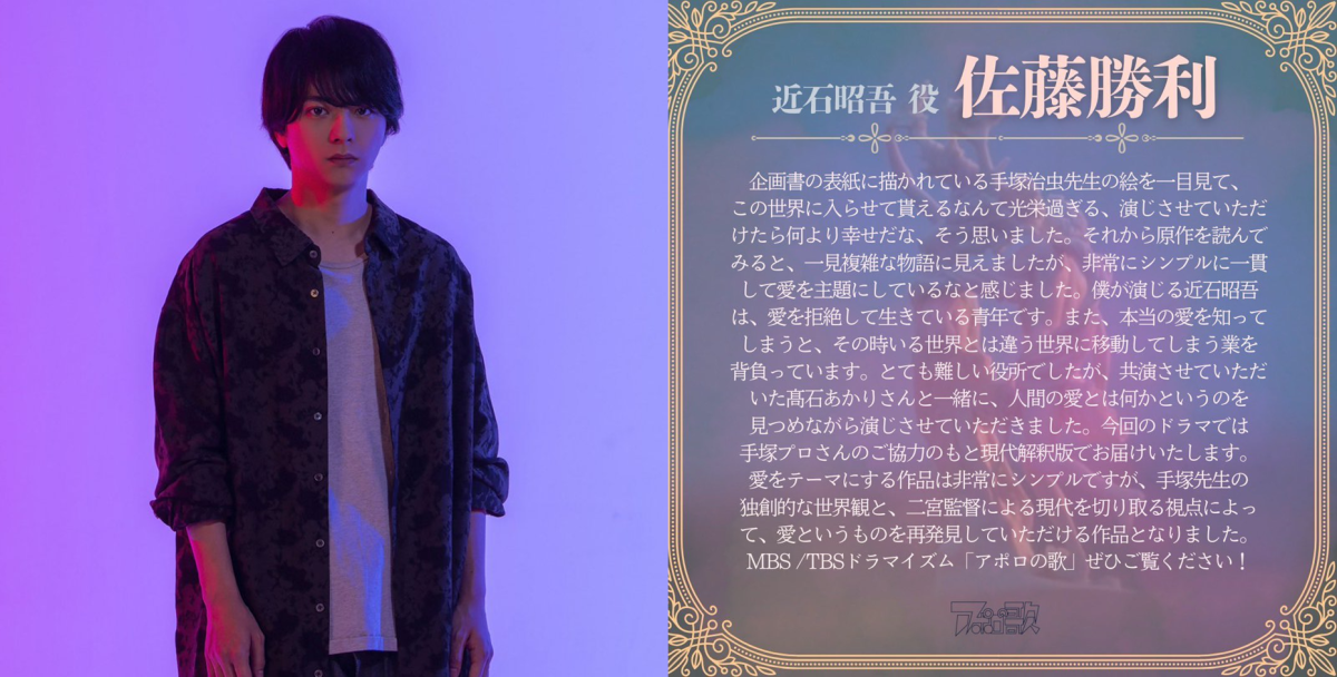 近日日本電視台 MBS/TBS 宣布,將改編手塚治虫的經典作《阿波羅之歌》( アポロの歌 ) ,並宣布由佐藤勝利(Sexy Zone)與高石明里主演,將於 2 月 18 日起播出,主視覺及前導預告也已公開。
