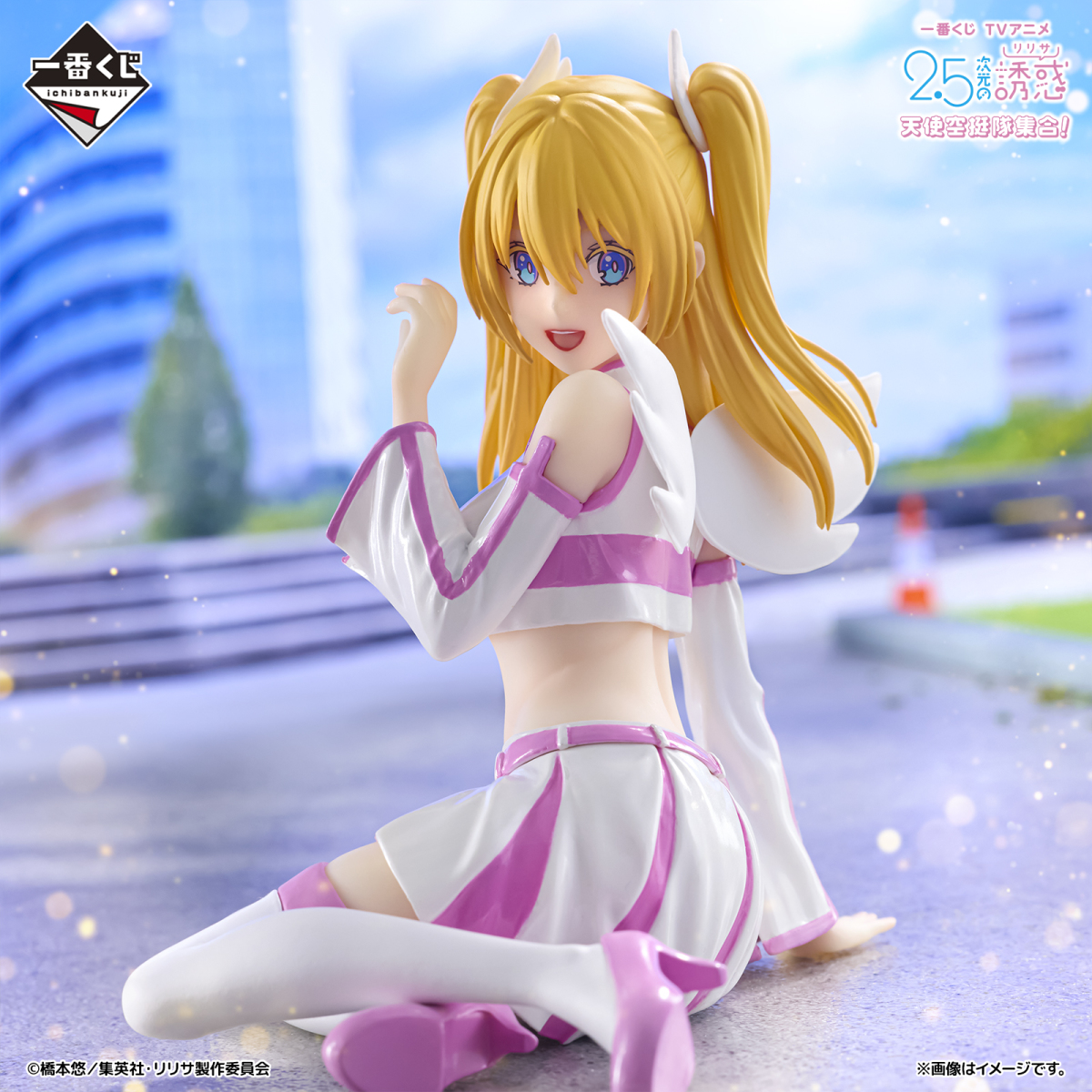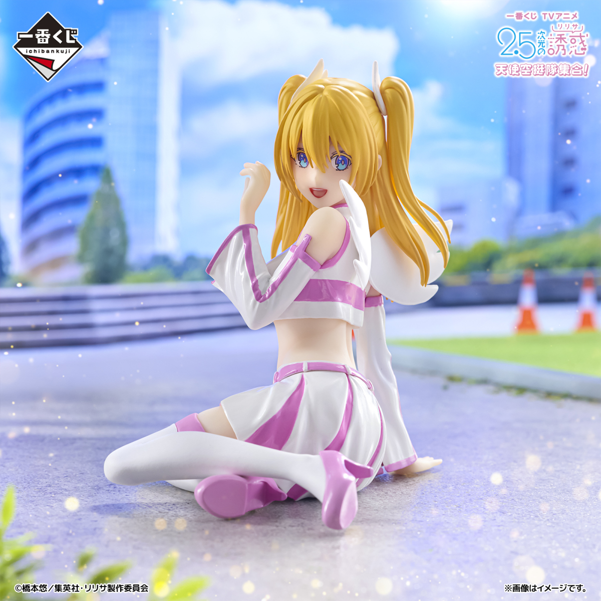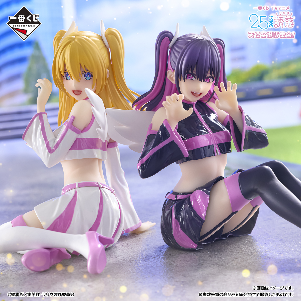 本次的「《2.5 次元的誘惑》天使空挺隊集合!」以作品中多位人氣角色及她們出 Cos 的造型為主軸,提供 A~J、最後一賞與雙重中獎賞等不同級別的賞品。其中 A 賞部分為莉莉艾露的角色模型,B 賞及雙重中獎賞則為米莉艾拉的角色模型 ,細節製作理理沙及美花莉裝扮成兩位角色的造型,雕刻還原姣好纖細的身材曲線以及服裝的皺摺及造型細節,並以亮面漆色還原服裝的質感,展現輕盈美好的模樣!