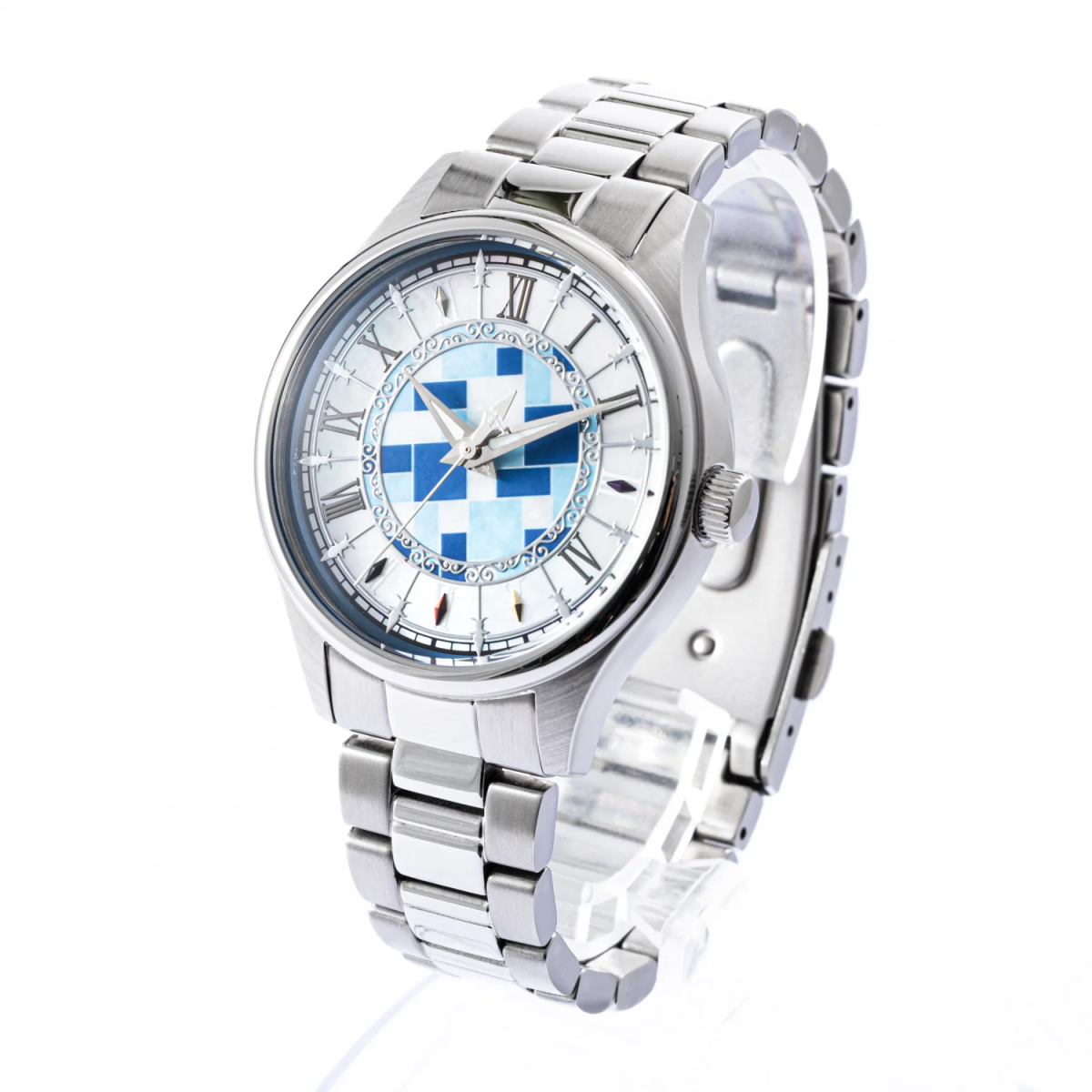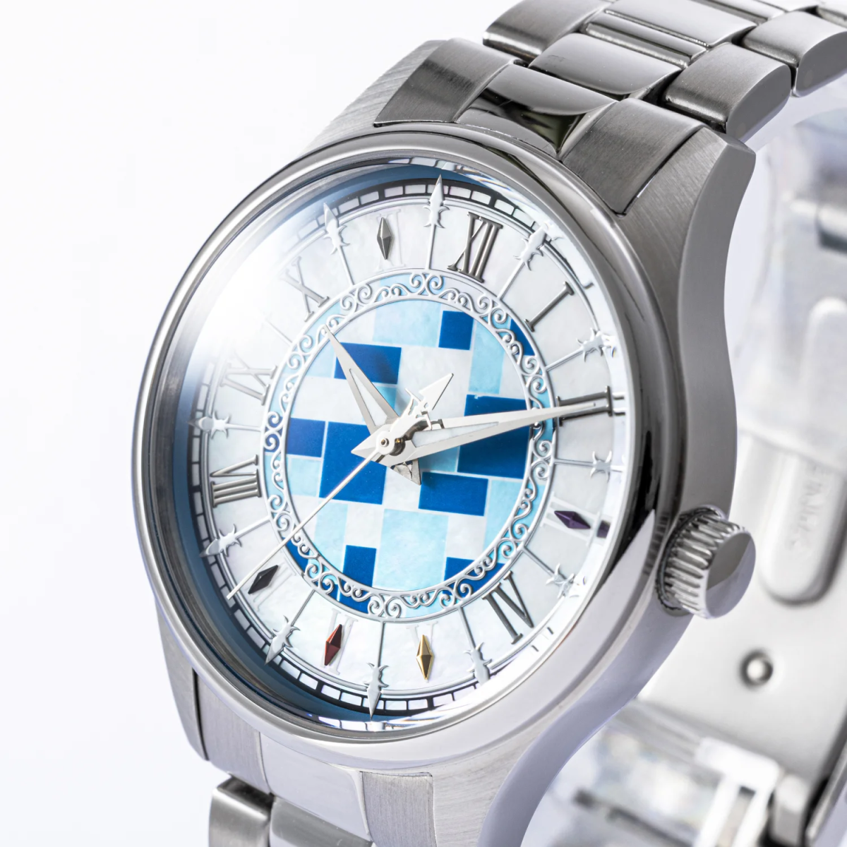 秒針設計靈感來自姬柊雪菜的武器「雪霞狼」。時間刻度更特別鑲嵌了象徵「龍蛇的水銀」、「獅子的黃金」、「冥姬的虹炎」、「夜摩的黑劍」及「水精的白鋼」的石頭裝飾,並依照眷獸編號的順序排列!錶背還刻有姬柊雪菜的內褲圖案與「ねこまたん」的可愛標記。