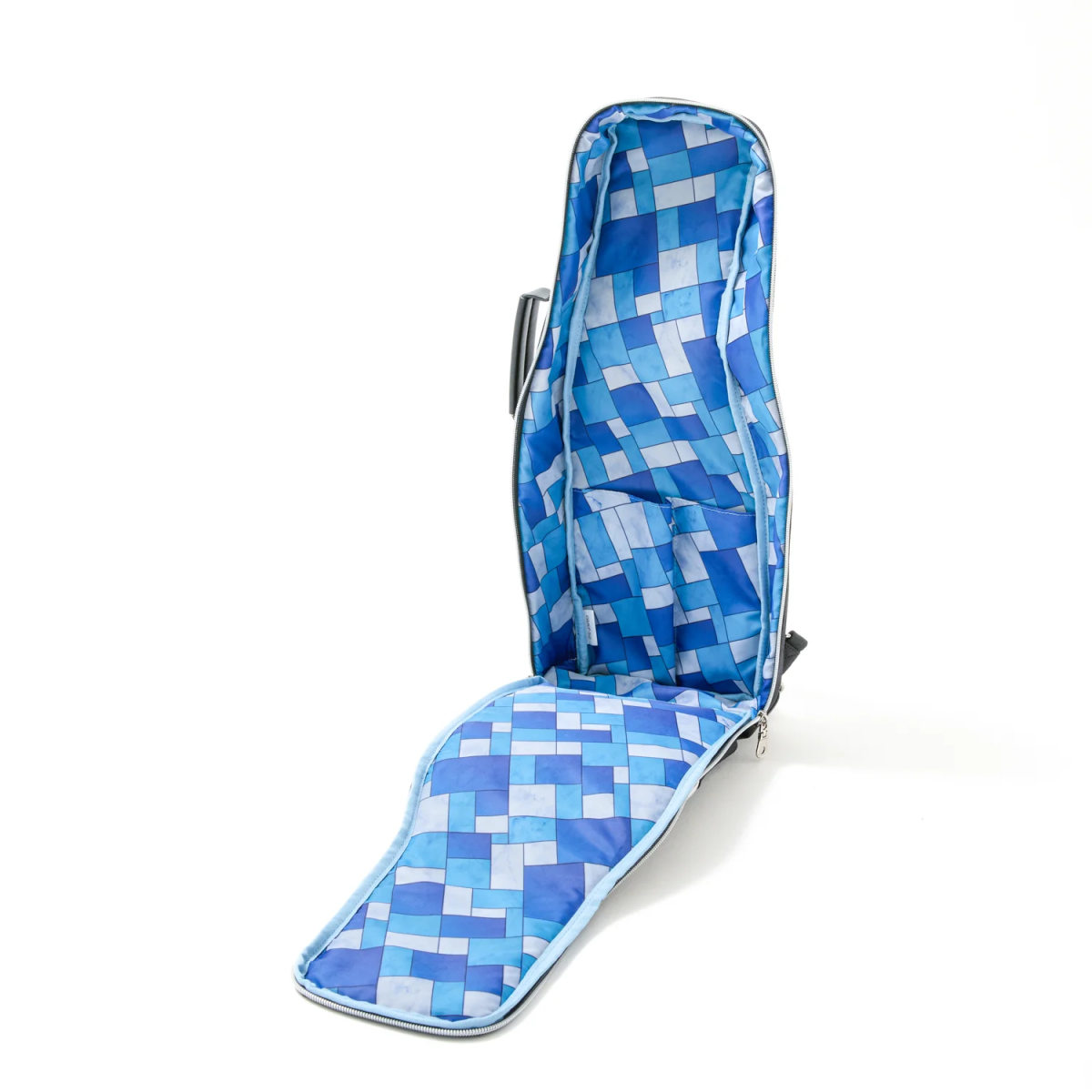 打開正面的拉鍊,你會看到內襯是雪菜招牌的粉紅格紋(放心,裡面沒有內褲!)。內襯可以拉出來近距離欣賞這個充滿細節的布料設計。主收納空間的內襯則採用幾何圖案設計,讓人瞬間聯想到《噬血狂襲》的獨特世界觀。