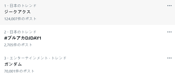 ▼ 機動戦士Gundam GQuuuuuuX(ジークアクス)也立刻成為 X 趨勢熱搜關鍵字。