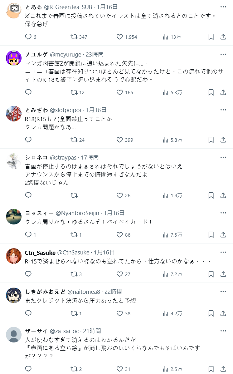 這項運營超過 13 年的服務突然宣告結束,讓許多使用者感到不捨。有網友在社群平台上表示:「又一段回憶消失了」、「最近的這種趨勢真讓人擔心未來會發展到什麼程度」。對於這種 R-15 甚至 R-18 的平台,真的越來越多都受到類似壓力只能停止服務,粉絲也不免擔心會越來越擴及各種地方。