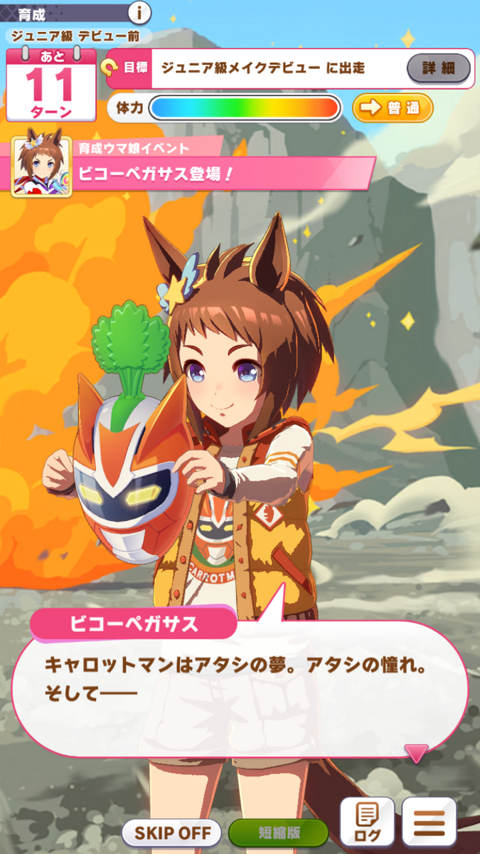▼ 遊戲中微光飛駒也會拿出紅蘿蔔俠的面具,支援卡「必殺 ! 雙重胡蘿蔔拳」也有出現在卡圖上。