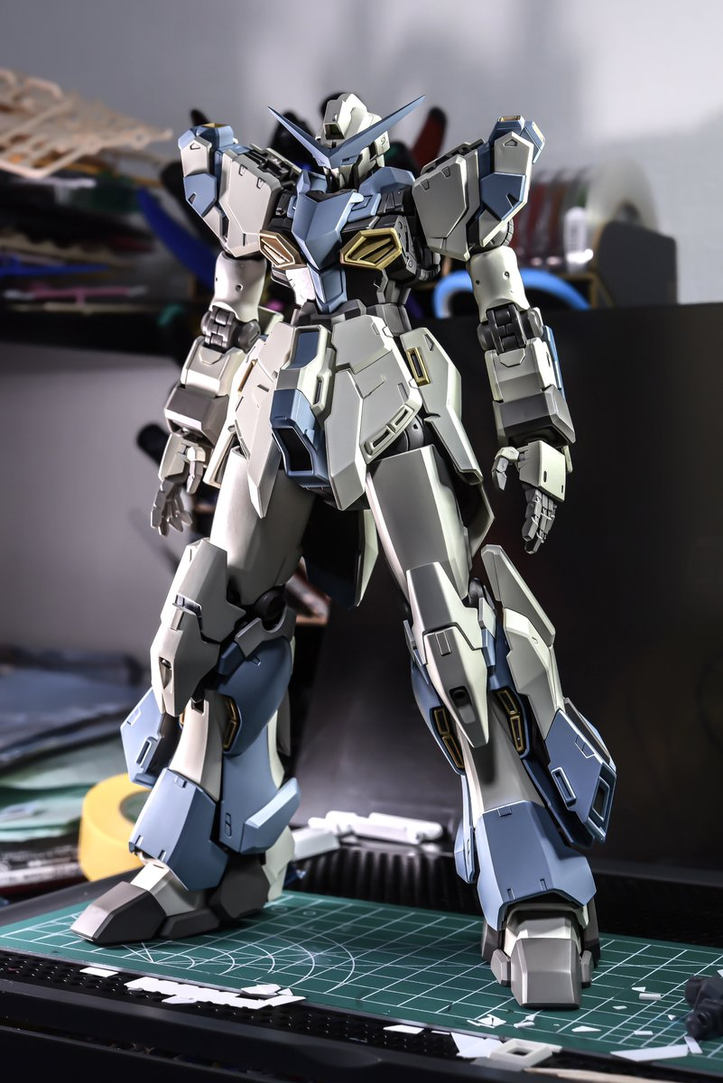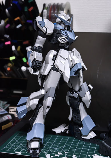 最終,puras 通過改動背包部分,才讓作品徹底完成。透過塗裝和水貼設計等巧思,最終呈現出更符合聯邦軍風格的樣貌。Puras 將這台機體命名為「ハイ・ノウェムゲベーア」(HiN-G)。