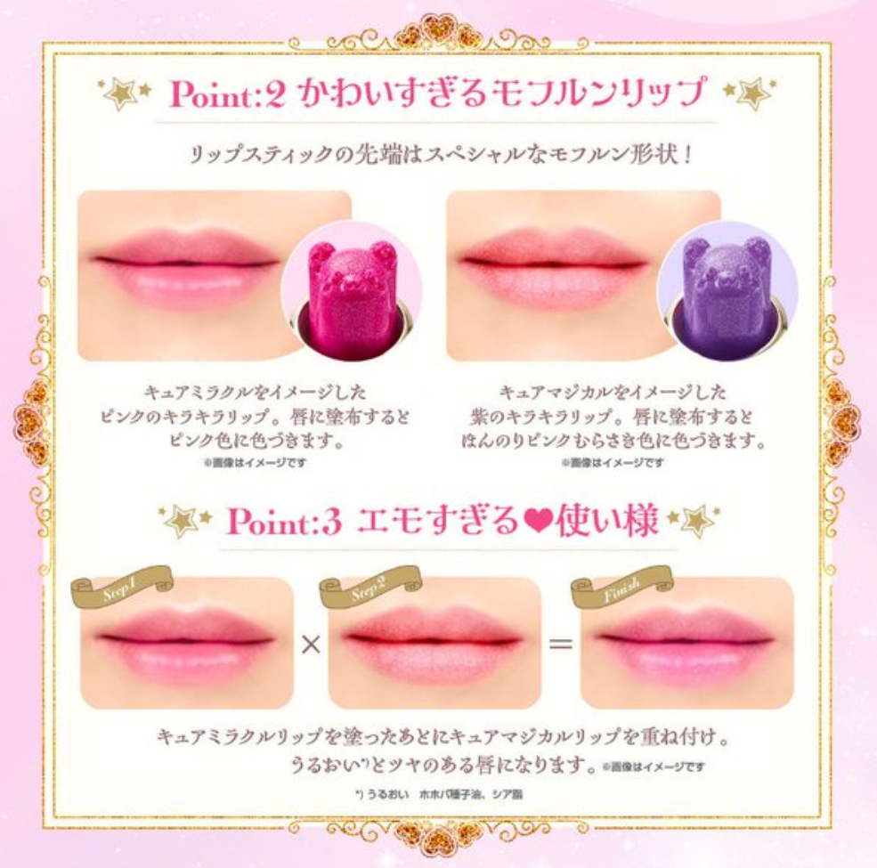 「魔法天使唇膏」 則是以魔法天使為靈感,塗抹後會呈現淡淡的紫粉色,展現柔美光澤。