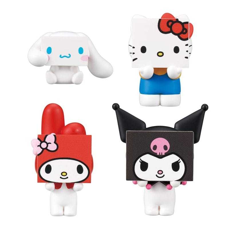 本次的「三麗鷗明星翻轉表情 角色模型」轉蛋每款高度約 3.5 公分,為人氣的三麗鷗明星們打造了手舉印有自己臉的牌子的動作,收錄 Hello Kitty 、美樂蒂、庫洛米、大耳狗以及人魚漢頓五種款式,角色們可愛的臉部造型被印在了平面的牌子上,每個人將它對準自己的臉的樣子在視覺上呈現出平面與立體交織的有趣效果,一字排開超級可愛,從不同的角度欣賞也會有不一樣的感受,喜歡三麗鷗明星的各位玩具人不要錯過!