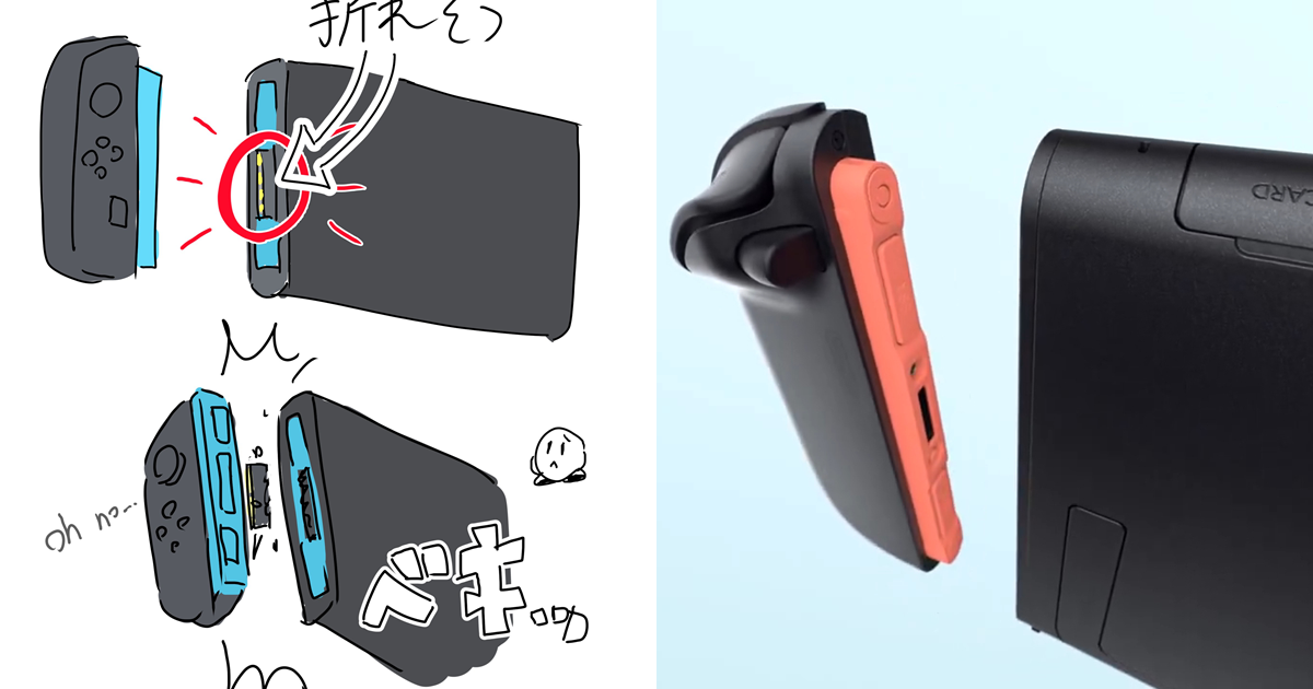 然而,同時也有部分玩家對於此次新主機「磁吸式設計」的改動提出疑慮,雖然取代了過去在Nintendo Switch的滑軌設計,讓Joy-Con的安裝更加直覺化,但自從在Twitter(現稱X)上,有網友かぬいち skeb(@KanuitiChrom)發布了「插槽可能折斷」的情境圖後,也開始有玩家不忍擔心,這一改動是否成為 Nintendo Switch 2 在產品耐用性上的「致命缺陷」?