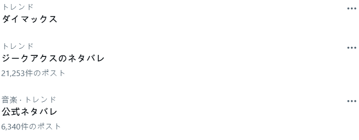 ▼ 「ジークアクスのネタバレ」與「公式ネタバレ」的關鍵字也出現在 X 趨勢上。