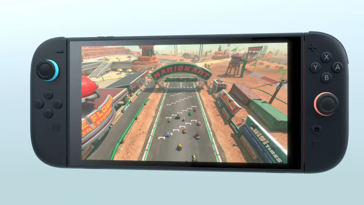 在 Nintendo Switch 2 硬體外觀展示影片中,顯示了與以往的《瑪利歐賽車》截然不同,並且精緻的全新賽道,還展現了多層次的環境效果。
