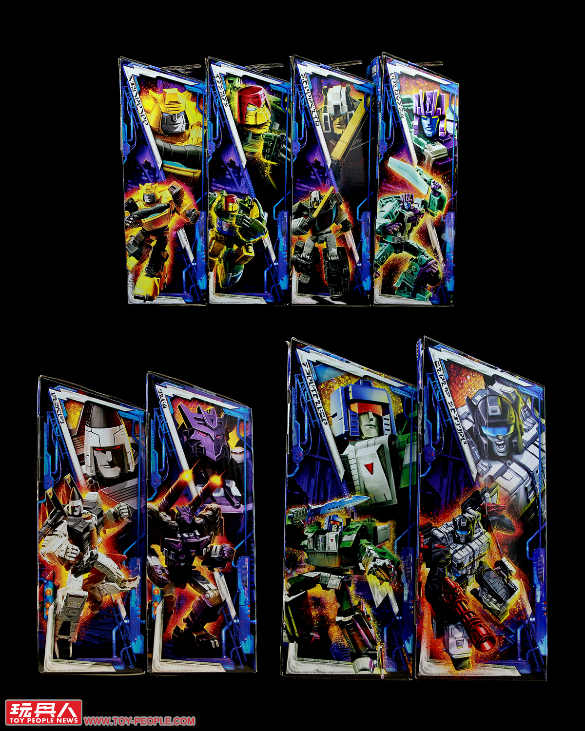 ▼本次開箱報告的八位主角,收錄了四款豪華戰將(Deluxe Class)、兩款中型的巡弋戰將(Voyager Class)、以及兩款大盒裝的無敵戰將(Leader Class)。