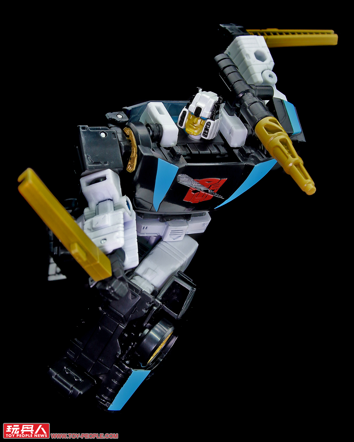 ▼「輪傑(艦隊宇宙)」(或譯作阿積,Armada Universe Wheeljack),取材自2002年上映的動畫作品《變形金剛:艦隊》(Transformers: Armada)。原出身博派的戰士,但在一次作戰中遭困,苦等不到隊友的救援,最後投向拯救他的密卡登(Megatron)和狂派陣營,成為一個誓言報仇的致命士兵。