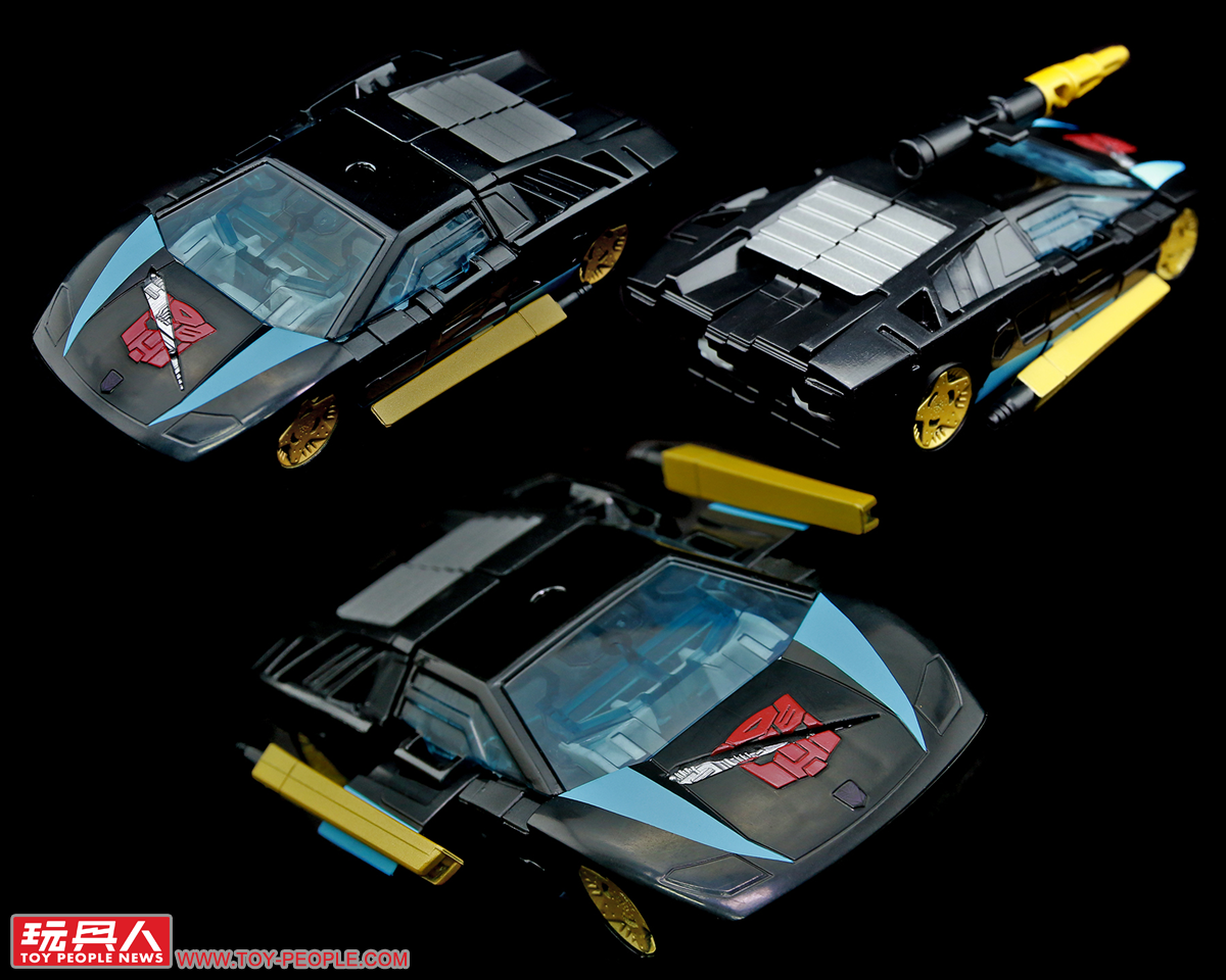 ▼載具模式,沒錯,就是那台煞氣a黑色跑車。雙棍可以搭載於車體的兩側,並重現舊版玩具利用迷你金剛開啟鷗翼式車門的形態喔!