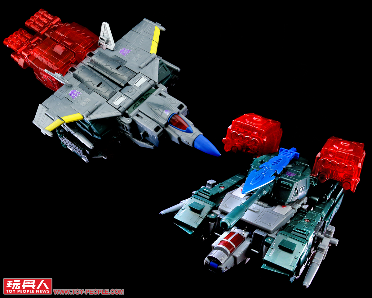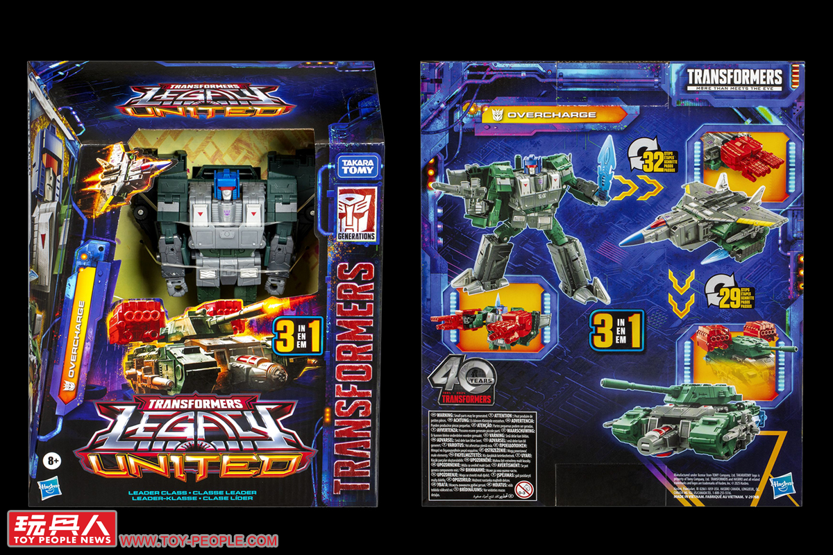 ▼「過充」(Overchrage),由昆特紗人(Quintesson)所量產的機器人軍隊,被稱呼為恐怖金剛(Terrorbots),被貪婪的昆特紗人當作商品來交易,由於需要大量的能源才能有效運用而得到過充之名,顯然...買家們並不喜歡(應該不會回購)。過充曾經在2005年作為日本雜誌e-HOBBY的限定玩具,這次的版本同樣致敬了過去的三變金剛(Triple Changer)設計,改色自傳承版閃電(Blitzwing),可在機器人、戰車和戰鬥機三種模式間自由變形。
