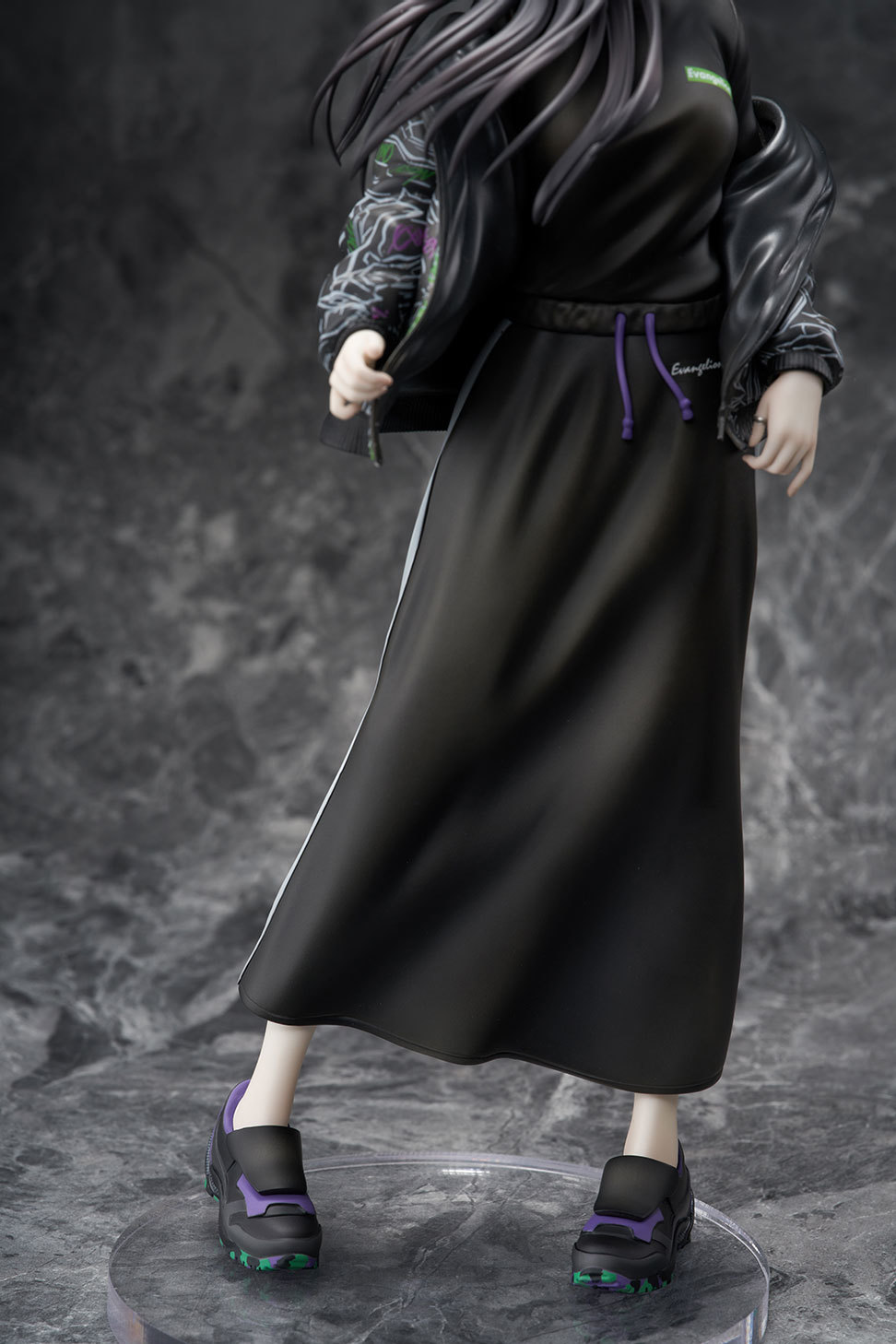 「真希波·真理·伊拉絲多莉亞斯 Ver.RADIO EVA Part.3」1/7比例模型,如實將米山舞所繪製的插畫立體化,全高約 26 公分,再現真希波回眸的調皮表情,頭髮自然放下的造型更是難得一見!將充滿街頭感的外套半脫,露出內搭的休閒服、運動長裙,傳達時尚穿搭風格。採用全彩塗裝,服裝精緻刻畫出皺褶細節,並印刷有細膩的圖樣線條,更顯酷勁;鞋子的造型帥氣又時尚。
