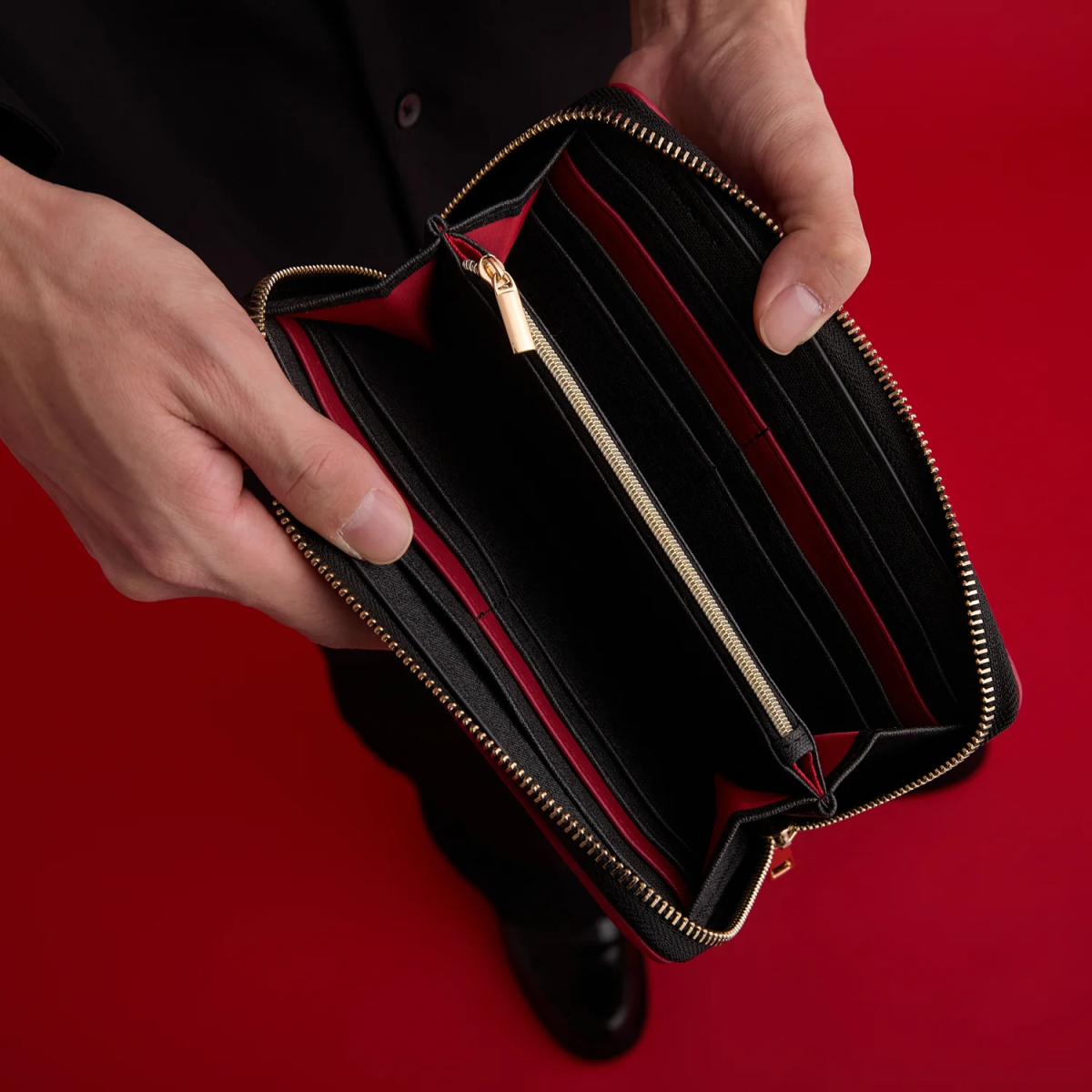 以操控時間的天使〈刻刻帝〉為靈感設計的長夾。以黑色為主色調,搭配紅色點綴,完美展現時崎狂三的經典配色,正面則融入了〈刻刻帝〉立體鐘盤的設計。長夾內部配置擁有 12 個卡夾與 2 個紙鈔收納層,非常適合生活使用。