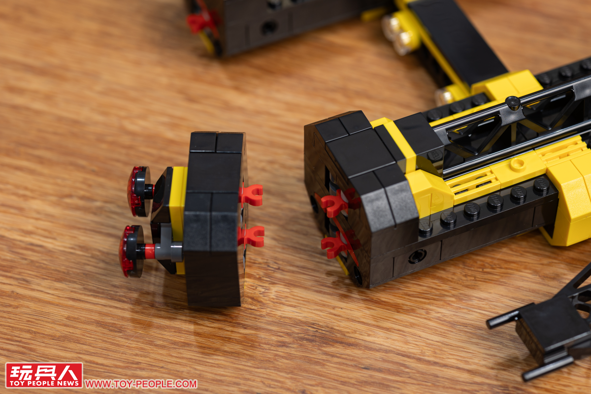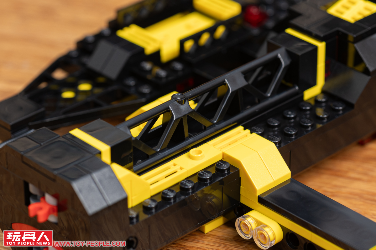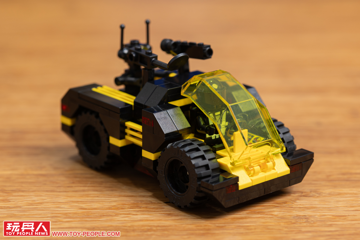 ▼ 機器人可以搭乘在後方;值得一提的是,這款磚拼機器人在設計師 Jae Won Lee 的設定中是 Blacktron 機組人員從「6952 Solar Power Transporter」這組偷來重新上色的版本,變成黑色之後氣場真的瞬間改變!又帥又酷。