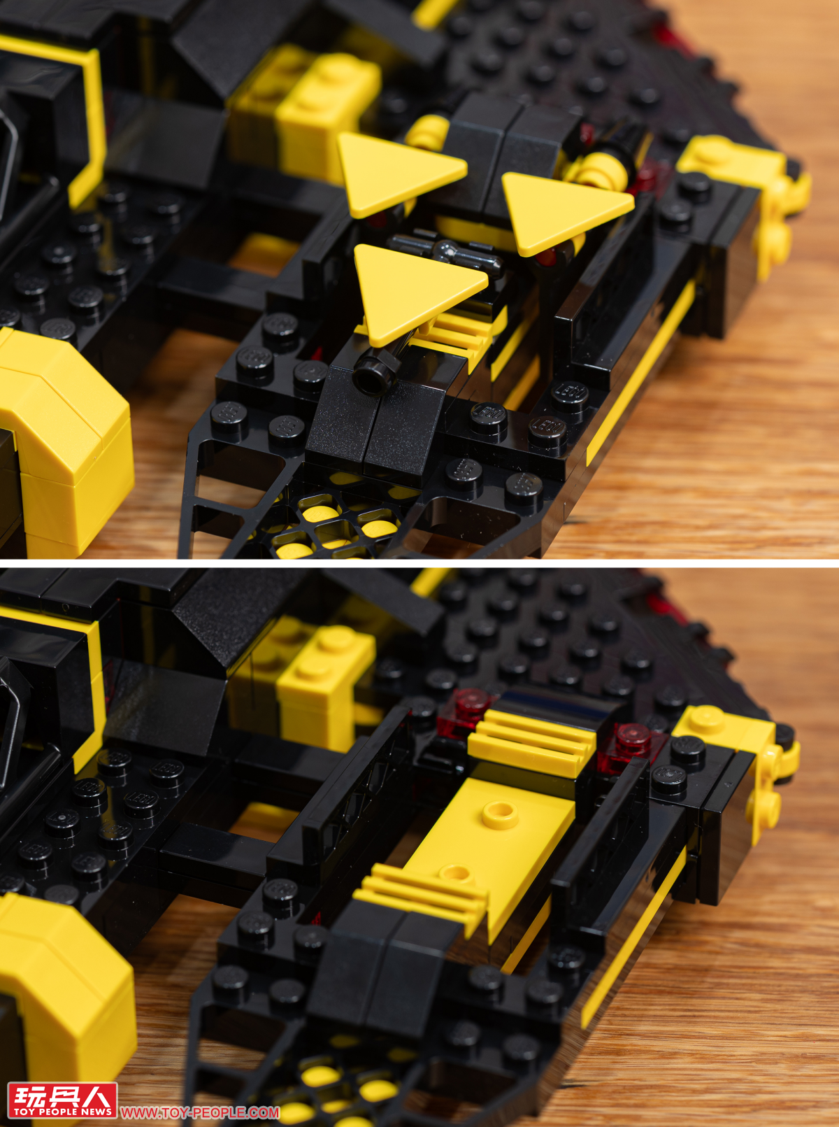 作為一個繼承復古反叛靈魂的 Blacktron 主題新作,這次的太空船 Renegade 在小編看來顯然可以在滿足老粉絲的同時,一併吸引到新世代樂高迷一同加入酷黑的 Blacktron 陣營。以外觀來說,本作維持了經典的配色構成:黑、黃、透明黃、透明紅,太空船 Renegade 更在安裝雙人座駕駛艙之後達到了不對稱的造型精髓,搭配模組化的卡榫設計,你各位不只可以自由定義外觀,甚至還能做出擴充零件,打造出獨一無二的 Blacktron 陣營載具。