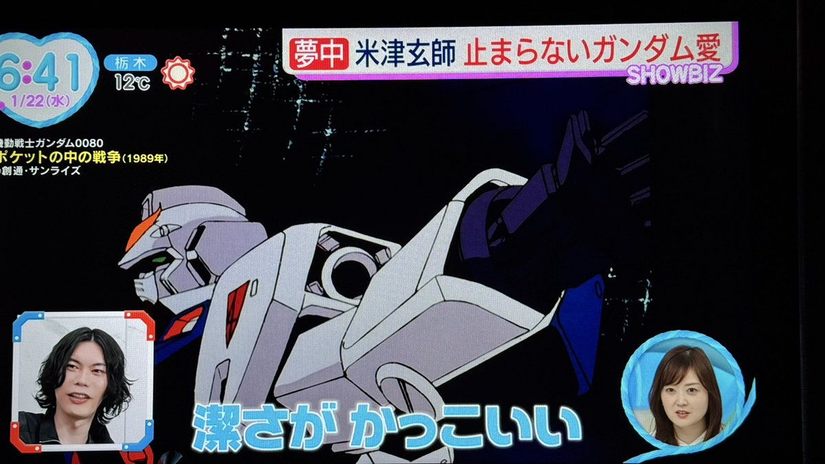 負責先行劇場版《機動戰士Gundam GQuuuuuuX-Beginning-》主題曲演唱的米津玄師,於今日 ( 1/22 ) 播出的日本電視台特別節目訪問中提到,自己對於鋼彈作品的熟悉,以及最喜歡的機體,暢談對鋼彈的熱愛。