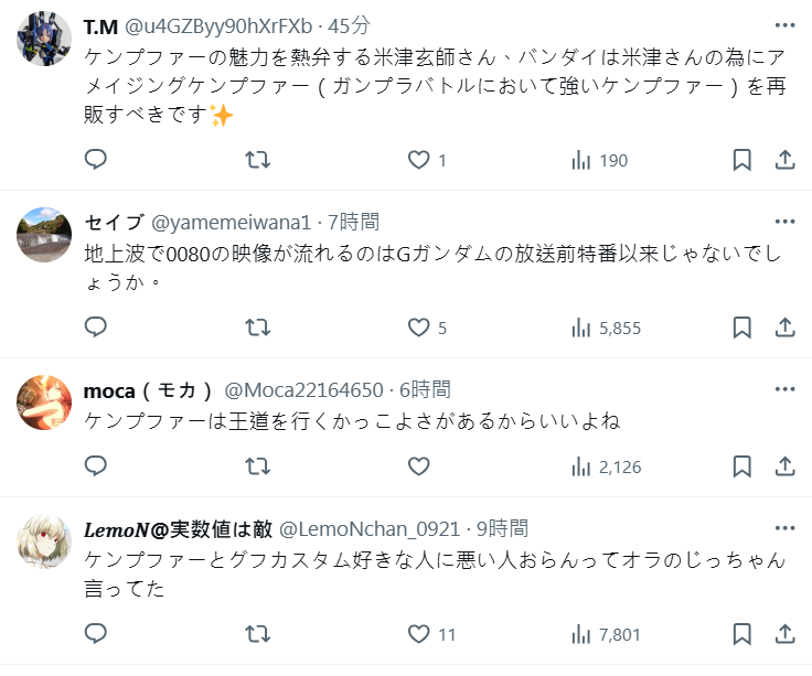 網友也表示,這下子萬代該再販這台的鋼普拉了吧,米津玄師都親自表現出對於凱普法魅力的熱衷了www。亦有網友開玩笑,喜歡鋼彈的人沒有壞人,尤其是喜歡肯普法的人 ( ? )