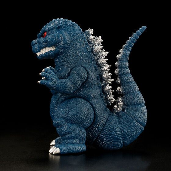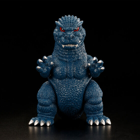 「Fantazzzy TOYS 哥吉拉軟膠模型 復古藍Ver.」則以過去同系列推出的哥吉拉軟膠修改而來,這次採用新色彩「復古藍」塗裝全身皮膚,並有著鮮紅的雙眼、銀白的利爪與背鰭。軟膠擁有全高約 17 公分、寬 12 公分、長 13 公分的尺寸,份量極具存在感。