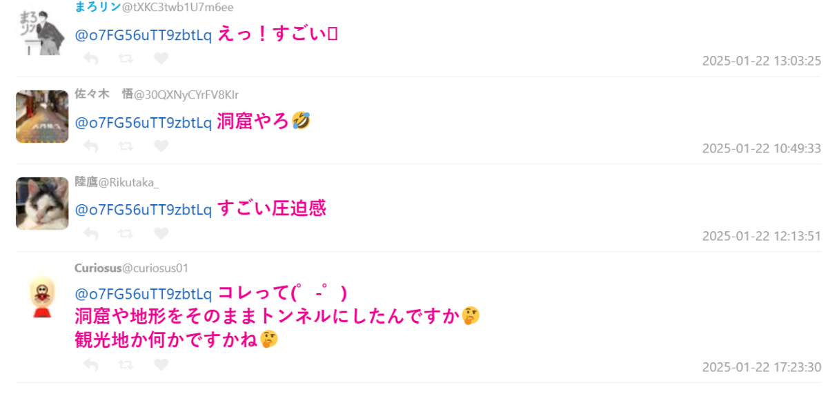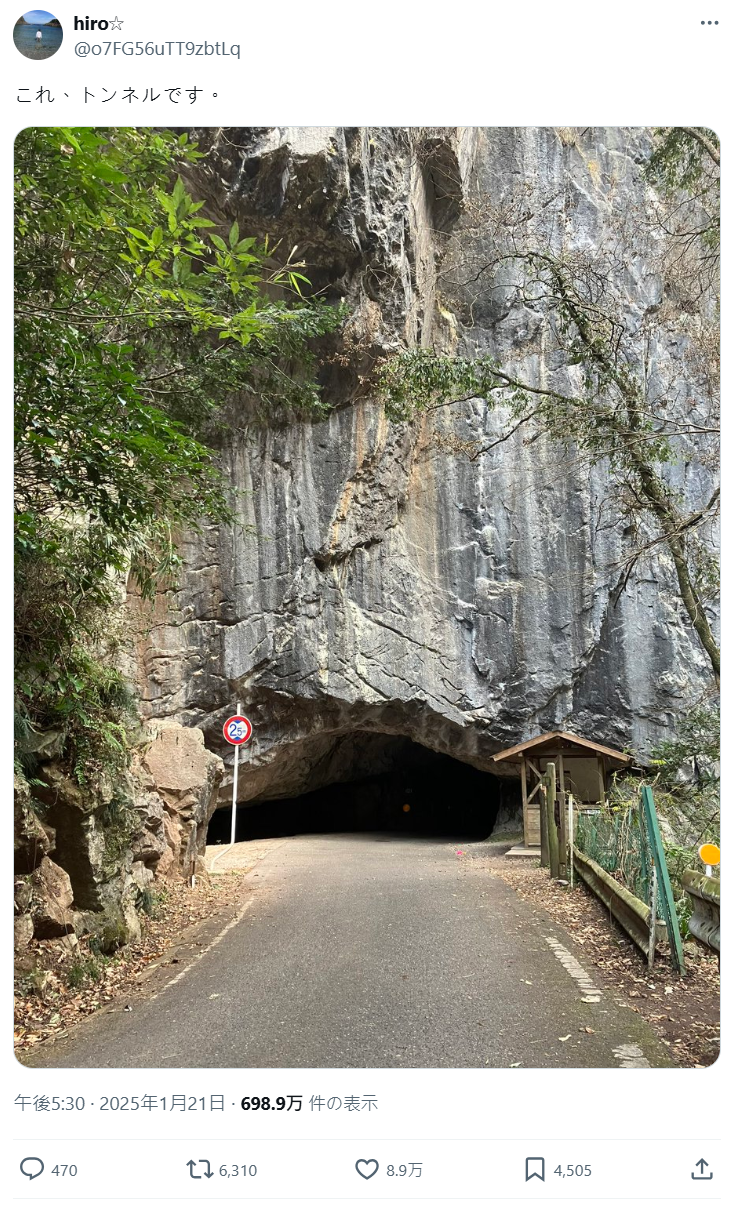 近日日本 X 上,有推主分享了一個奇妙的「隧道」,看起來像是一個山洞,頂上還有個看起來超巨大的岩石,彷彿隨時都有崩塌的可能,分享到 X 上立刻引起關注,網友也驚呼 : 「這是什麼地方 ? 」