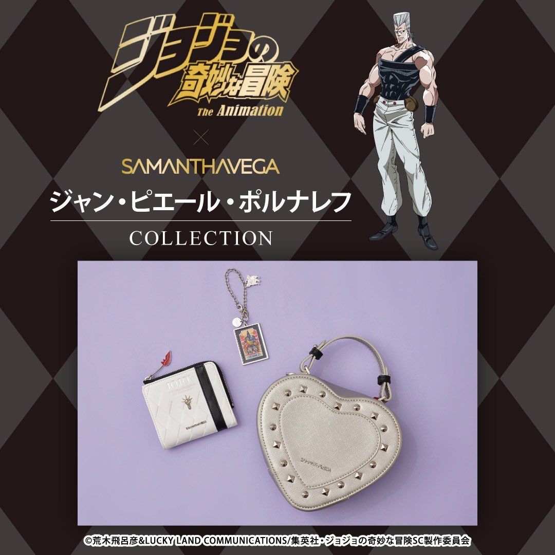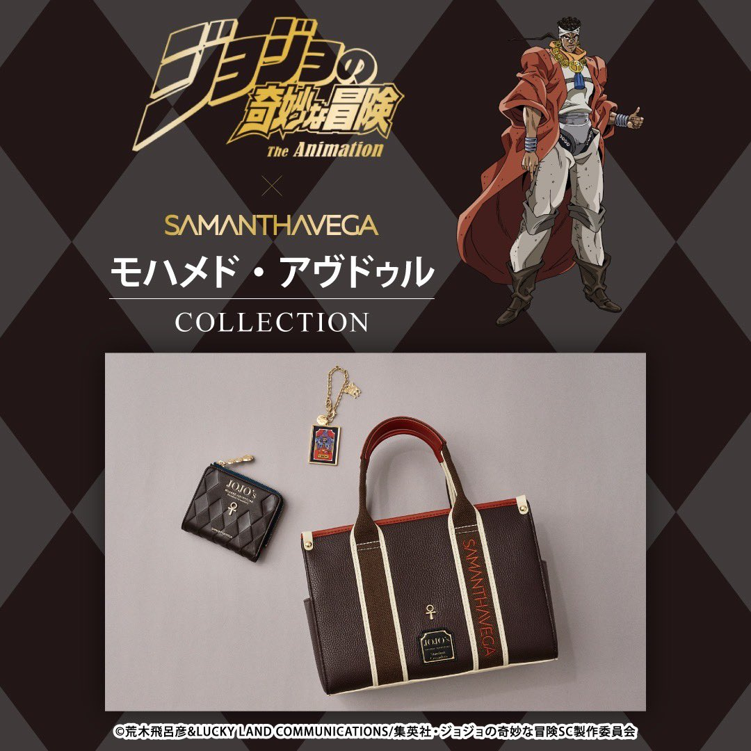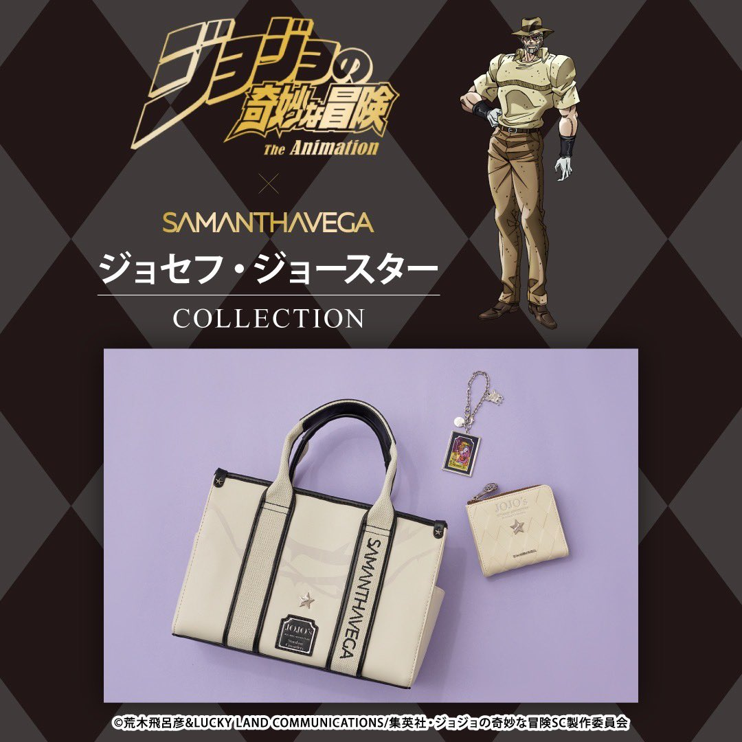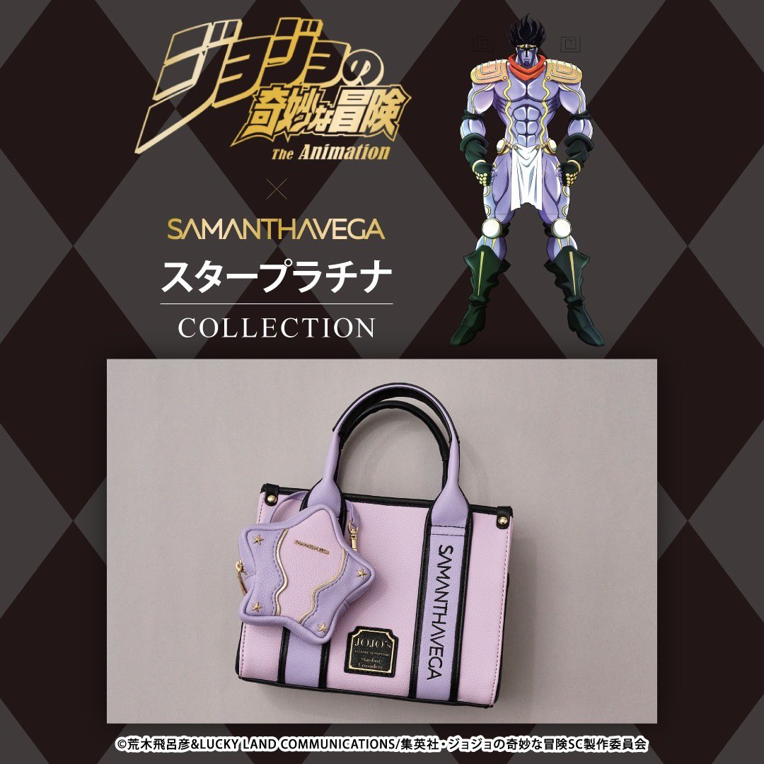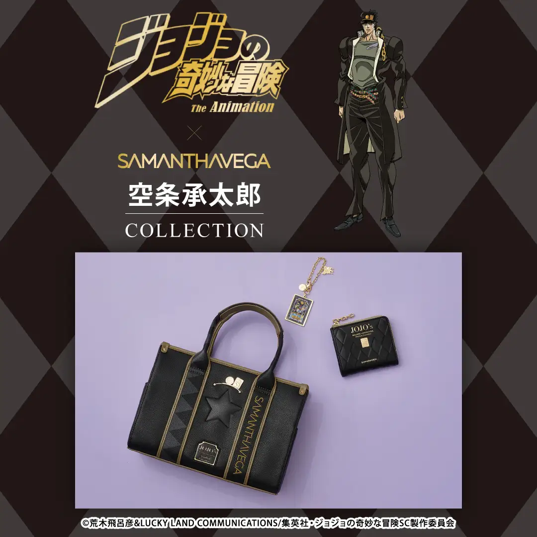 風靡國際時尚圈深受巨星、超模愛戴的日本精品 Samanth Thavasa,旗下子品牌多為女性用品為主,近日旗下子品牌 SAMANTHAVEGA 先前曾與《JoJo的奇妙冒險 黃金之風》&《JoJo的奇妙冒險 不滅鑽石》合作一系列包款。