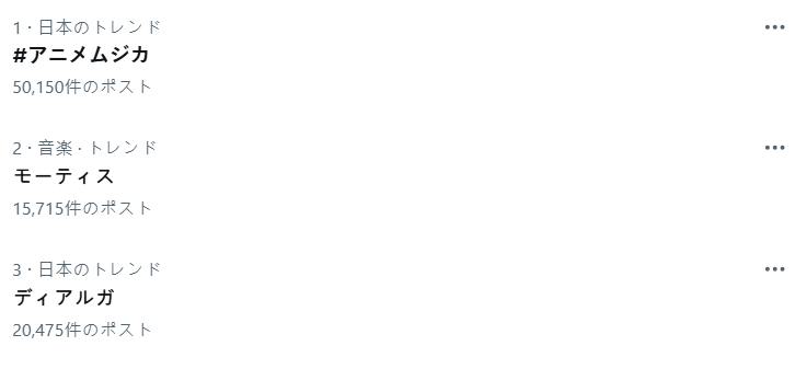 ▼ 播出後「アニメムジカ」成為趨勢首位,「ホラーアニメ」( 恐怖動畫 ) 也成為日本 X 趨勢熱搜。