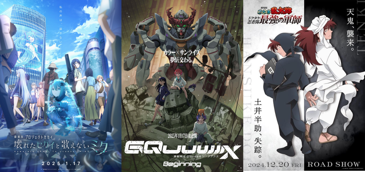 提到松竹的動畫作品,目前正於 1 月上映的有《世界計畫 崩壞的世界與無法歌唱的初音未來》以及先行劇場版的《機動戰士Gundam GQuuuuuuX-Beginning-》。此外,去年底上映的《劇場版 忍者亂太郎 毒竹忍者隊最強之軍師》票房已突破 15 億日圓,松竹的動畫作品持續受到高度關注。