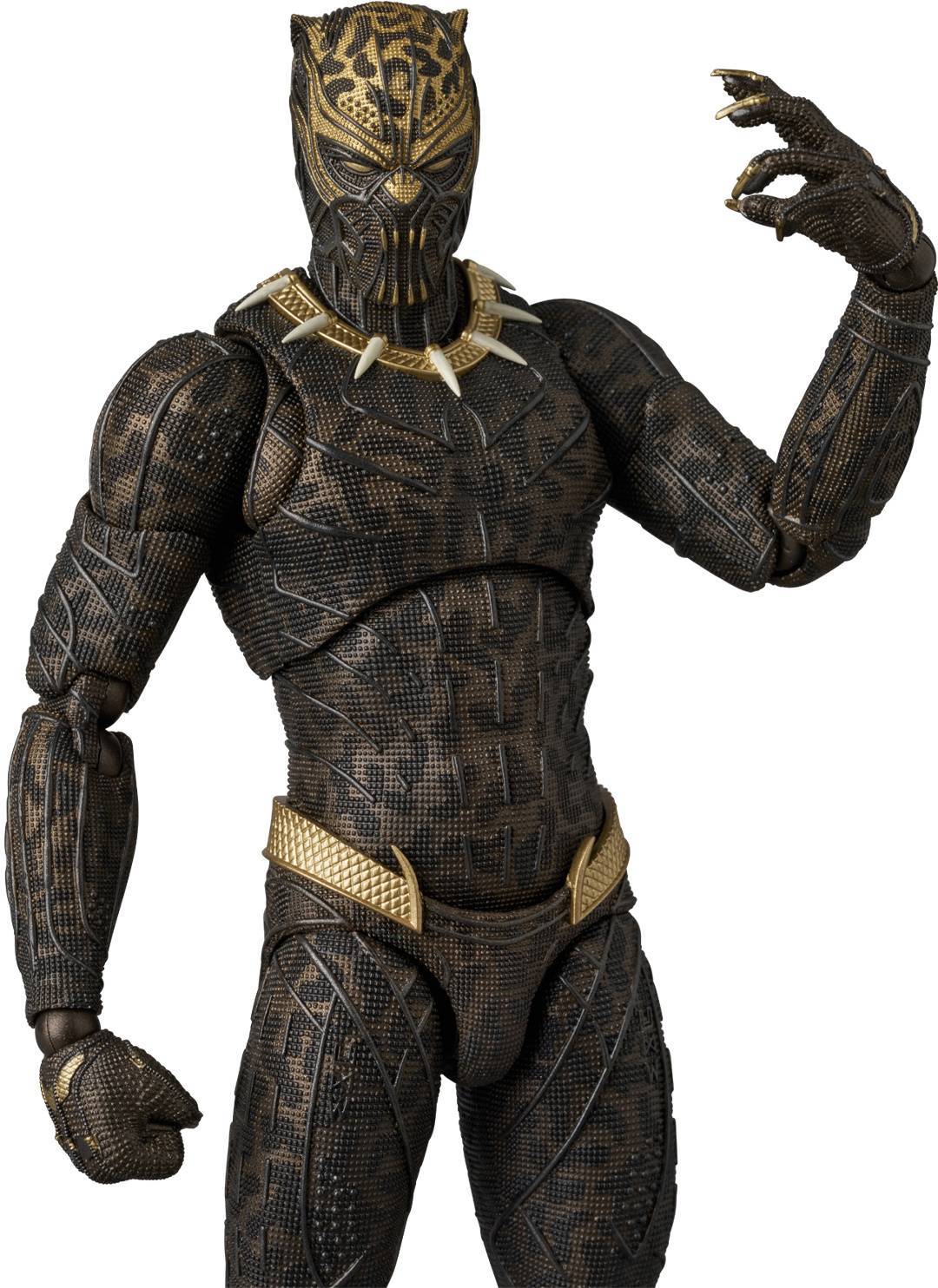 本次的 MAFEX 齊爾蒙格高約 15.5 公分,採用齊爾蒙格在篡奪王位後身著金豹戰衣的造型,還原他精實的肌肉線條,並塗裝重現浮誇的豹紋設計。配件部分附有另外兩顆在小比例下還原演員麥可·B·喬丹(Michael B Jordan)五官特徵的艾瑞克頭雕、多組替換手以及在與黑豹對佔中使用的矛與劍兩把武器,可以搭配靈活可動重現他在電影中的戰鬥姿態!