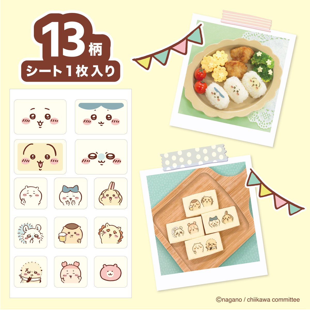 貼紙的圖案涵蓋了 13 種角色,包括 : 吉伊、小八、烏薩奇和小桃等角色,有分成臉部表情跟插圖造型。只要將貼紙輕輕貼在飯糰、零食等食物上,瞬間就變成超可愛的存在。無論是在便當裡或是派對上,都可以達成絕佳效果。