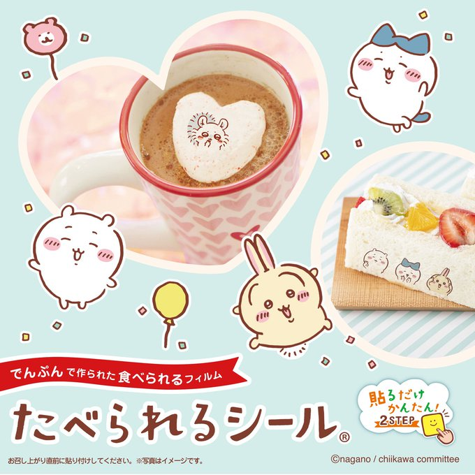 近日宣布與日本食品廠商たべられるアート合作,推出以「吉伊卡哇」為主題設計的「可食用貼紙」,能輕鬆地貼在各種食物上,打造可愛的裝飾效果。售價僅為 270 日圓,預計於 2 月初起,陸續在ちいかわ相關店鋪販售。