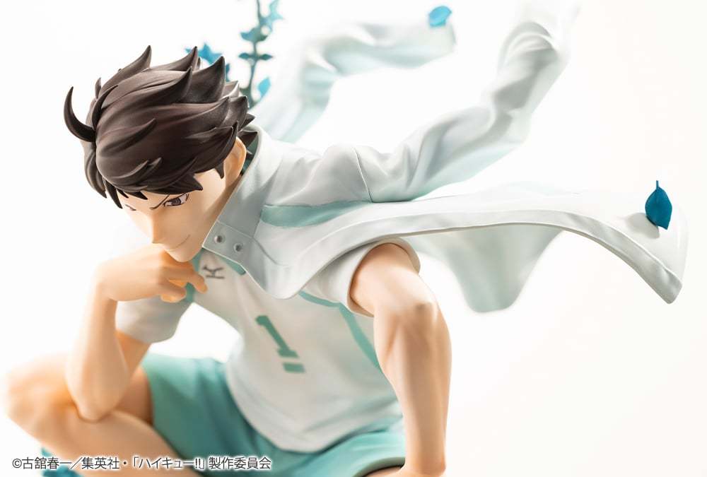 本次的及川徹是根據《排球少年!!》動畫作畫監督千葉崇洋繪製的插圖打造,以精湛的技術將底座的樹墩寫實呈現,製作出他盤腿坐在樹墩上的動態,雕刻還原青葉城西排球隊運動外套的飄逸動態和手腳精實的肌肉線條,部分噴塗加深增強整體的明暗對比,並印刷還原胸前的球衣號碼和背後的青葉城西排球隊 Logo,豪邁地展示大王者的強大氣魄!
