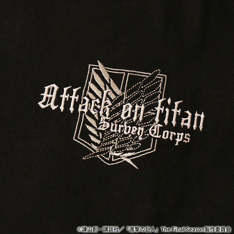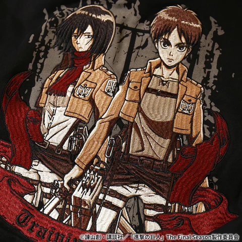 訓練兵團時期的艾連 & 米卡莎形象刺繡,雙袖更繡有訓練兵團徽章,霸氣十足。