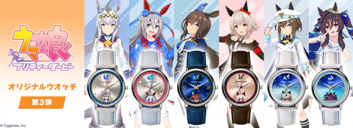 近日宣佈繼先前與推出手遊後爆炸性的引發話題,連帶動畫與周邊合作都非常人氣的 Cygames 企劃《賽馬娘 Pretty Derby》合作,這次再推出第三彈的聯名款手錶,共六種角色樣式。售價為 21,780 日圓,目前可於 PREMICO 官網預購。