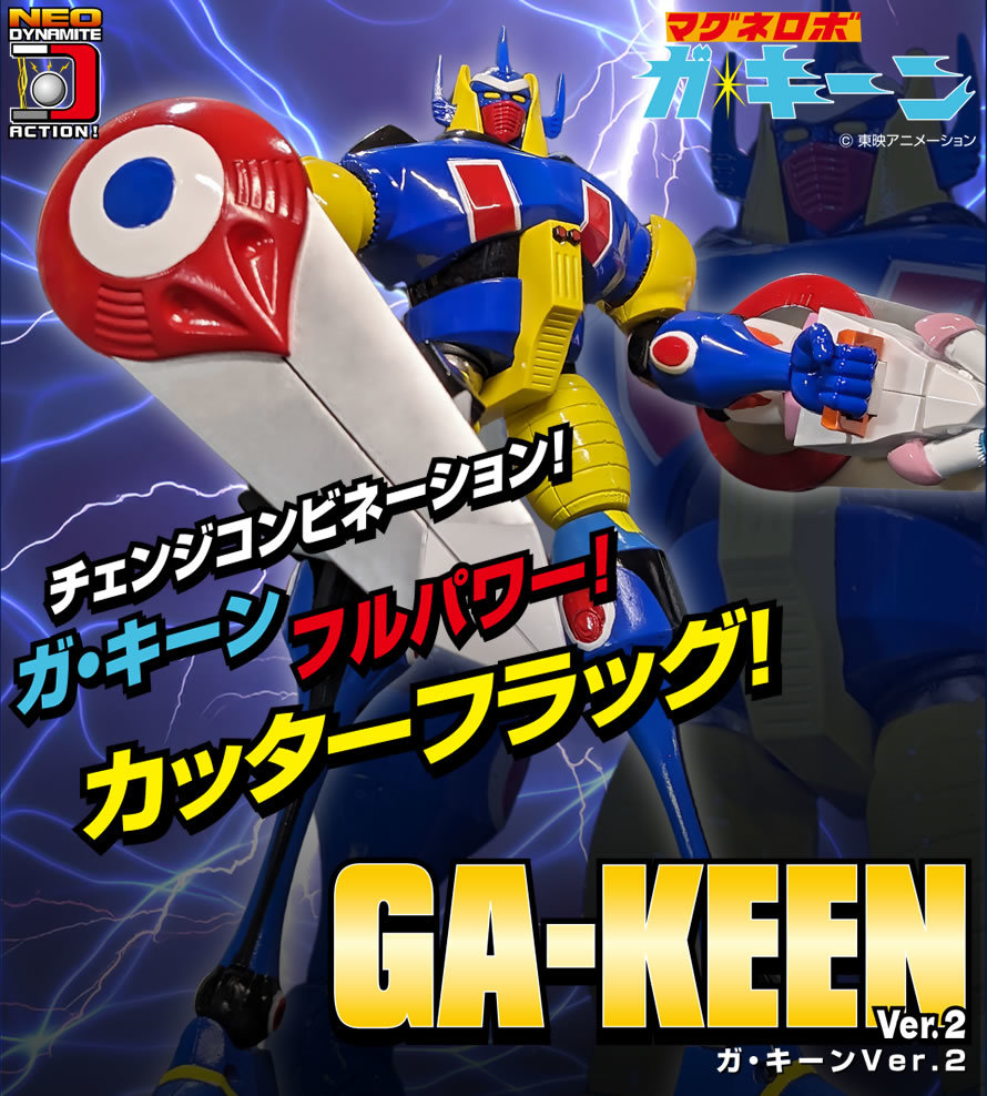 日本玩具公司EVOLUTION TOY旗下的DYNAMITE ACTION系列可動玩具,預定將於2025年4月,推出經典機器人動畫作品《無敵龍捲風》(マグネロボ ガ・キーン)之主角機器人「無敵王」(ガ・キーン)REVIVAL版本,也就是Ver.2!售價為25,080日圓。