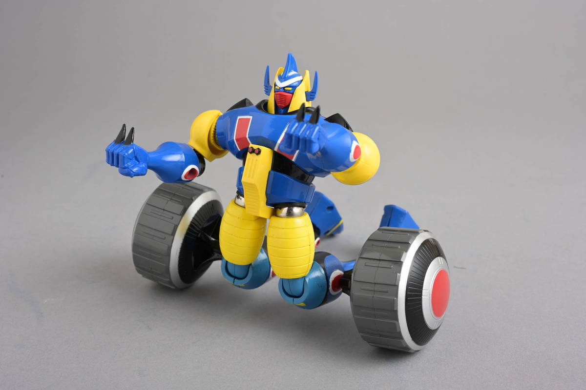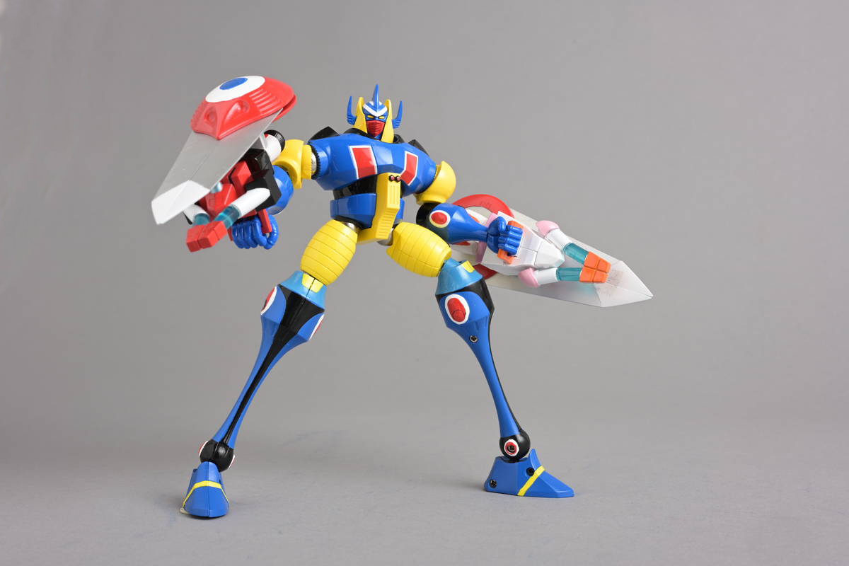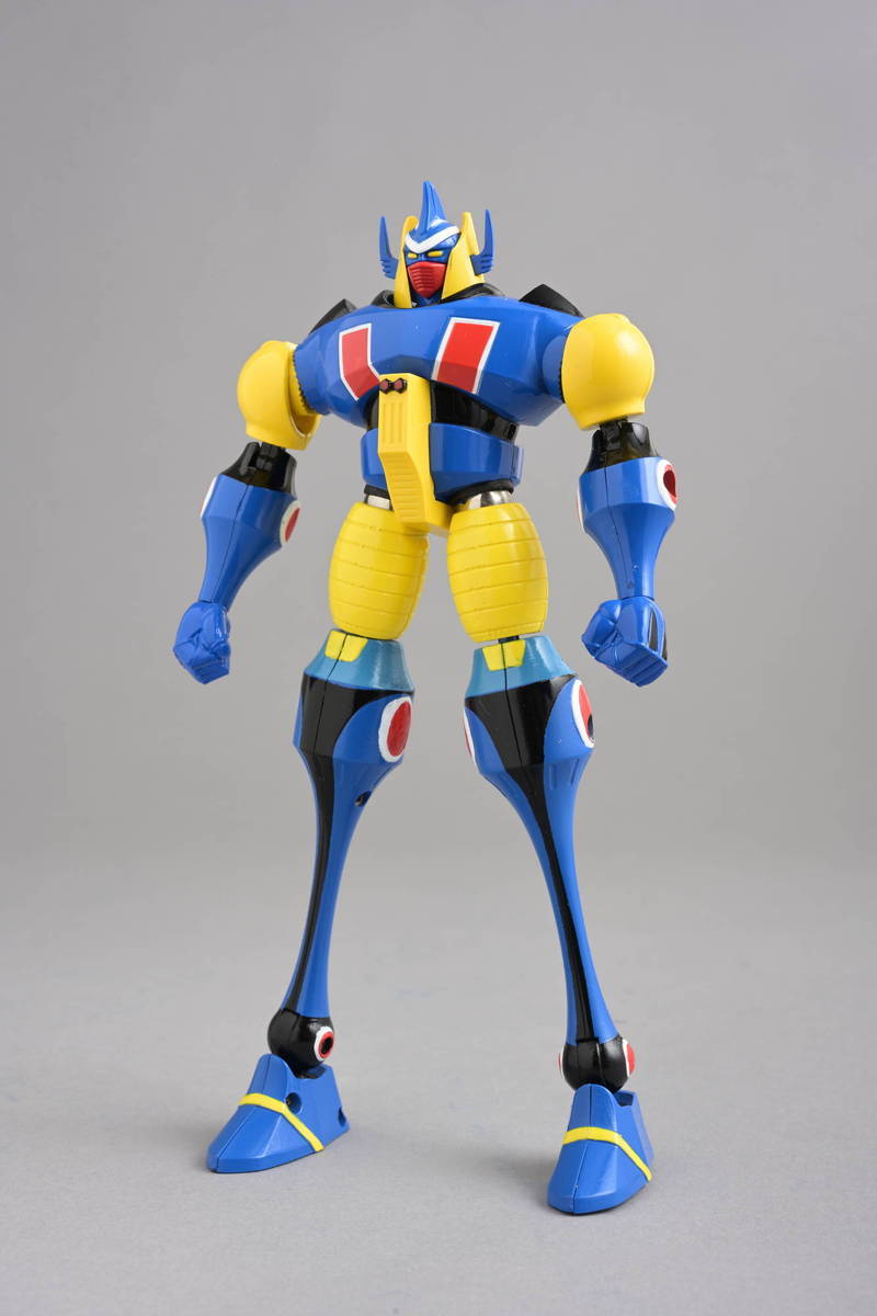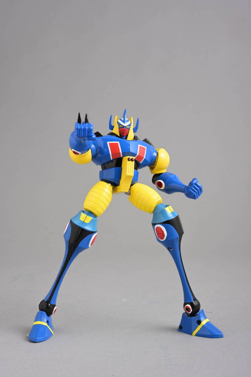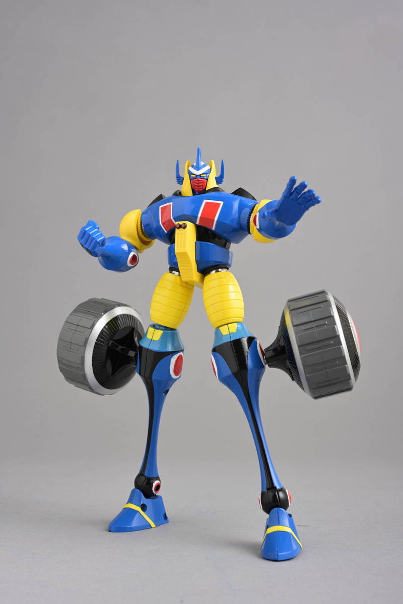 這款由EVOLUTION TOY預定推出的DYNAMITE ACTION無敵龍捲風的無敵王可動玩具,全高約17公分,將它在動畫中的模樣還原出來,各處關節以磁鐵搭配鐵球的方式製作,各種動作姿勢都輕鬆,最帥氣的莫過於無敵王可以透過和「神龍鐵金剛」(プライザー)跟「鳳凰鐵金剛」(マイティー)的配件合體,呈現「無敵龍捲風」(ガ・キーン フルパワー)的帥氣狀態!其他各種零件包含可以替換的左右手部零件有四組,長劍、大車輪,採掘用鑽頭等等,整體內容相當豐富。