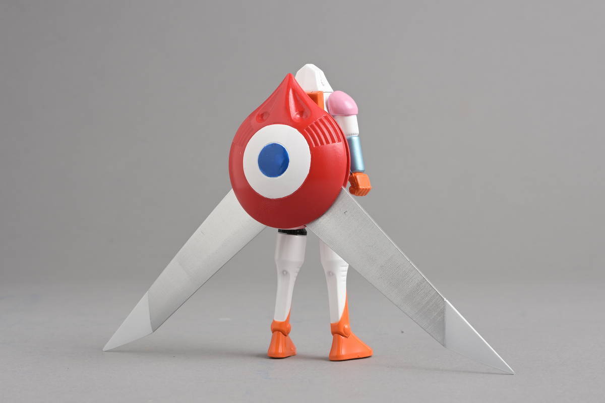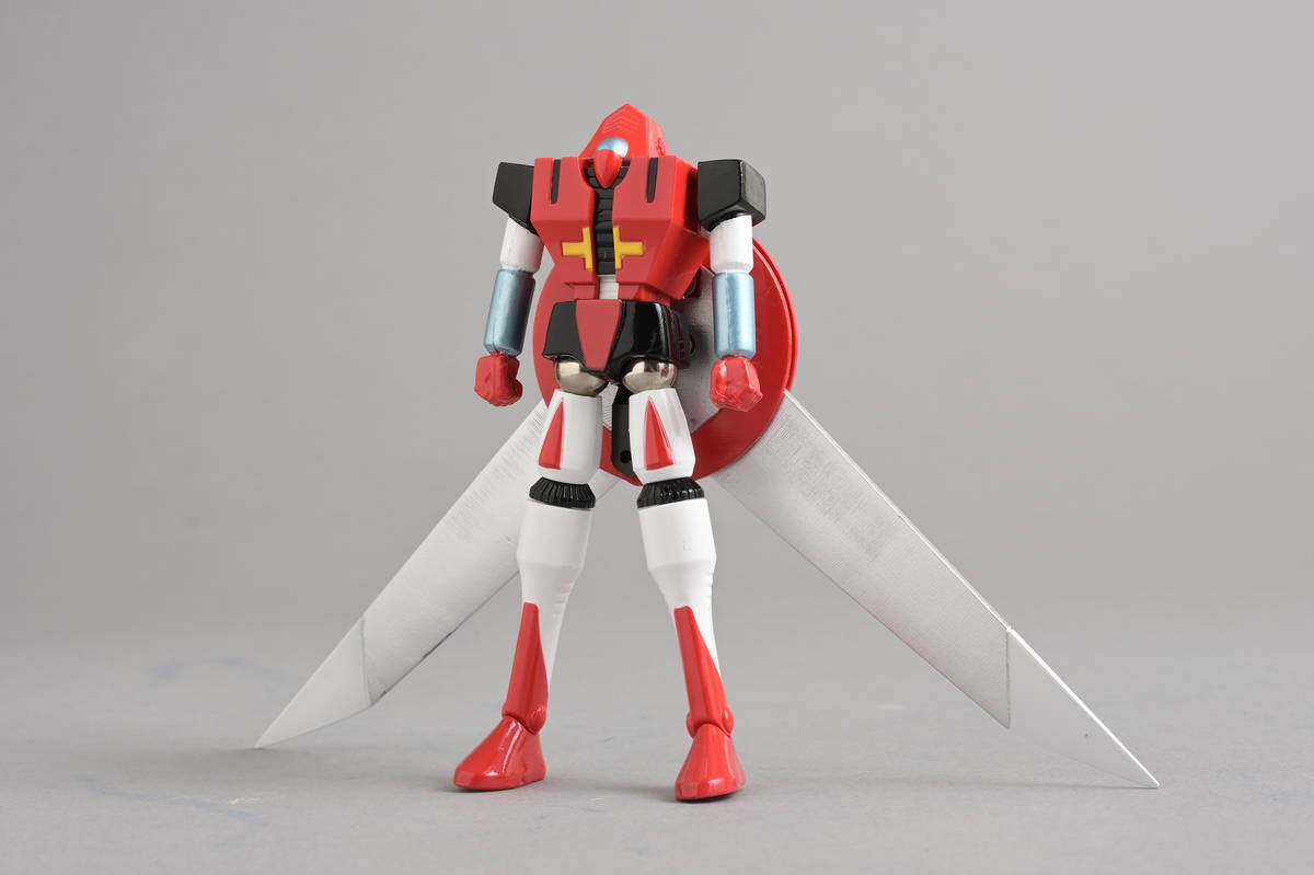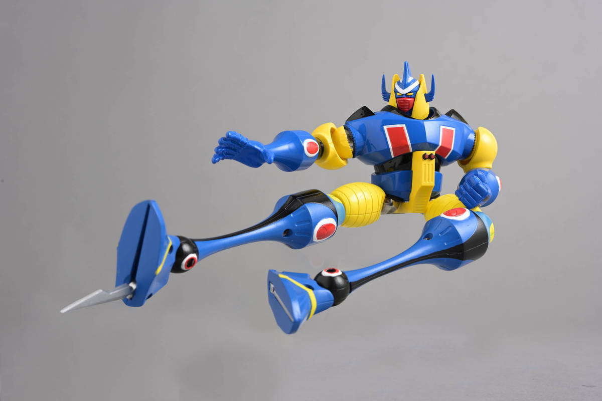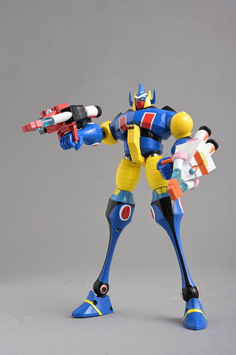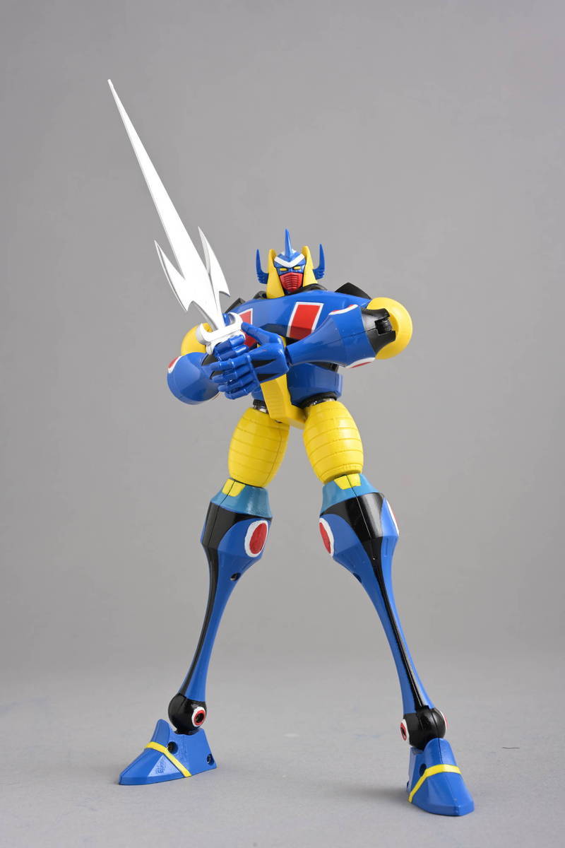 這款由EVOLUTION TOY預定推出的DYNAMITE ACTION無敵龍捲風的無敵王可動玩具,全高約17公分,將它在動畫中的模樣還原出來,各處關節以磁鐵搭配鐵球的方式製作,各種動作姿勢都輕鬆,最帥氣的莫過於無敵王可以透過和「神龍鐵金剛」(プライザー)跟「鳳凰鐵金剛」(マイティー)的配件合體,呈現「無敵龍捲風」(ガ・キーン フルパワー)的帥氣狀態!其他各種零件包含可以替換的左右手部零件有四組,長劍、大車輪,採掘用鑽頭等等,整體內容相當豐富。