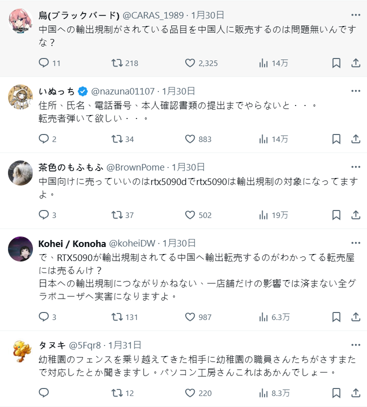 因為 RTX 5090 是備受關注的新品,導致當天的抽選活動吸引大量購買者,其中網友指出有不少疑似中國籍人士爭相排隊,場面一度失控。當時,X 上不斷出現「現場一片混亂」、「幼稚園的招牌被弄壞,連警察都來了」等相關貼文。