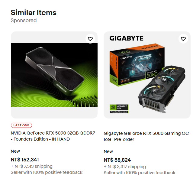 很快地,Nvidia 的 RTX 5090 和 RTX 5080 顯示卡如預期地正式在各大電腦商城進行開賣,而結果也不出意料的,這兩張全新的RTX 50 系列顯示卡,一推出就瞬間售罄,雖然是幾家歡樂幾家愁,也有人是選擇蹲久一點才選擇購買,不過早已虎視眈眈的黃牛,也利用了這次機會獲得大量顯卡,並且已經開始在 eBay 上大肆轉賣,再度引發RTX 50 系列顯示卡的供應短缺問題。