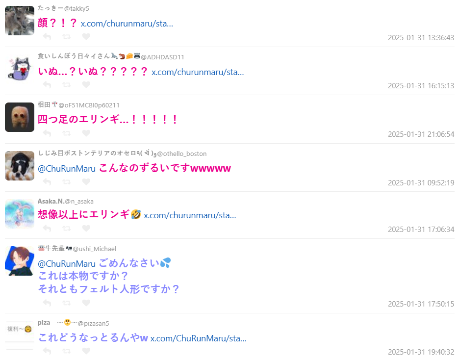 網友見狀也爆笑不已,紛紛留言表示「臉在哪!?」、「四隻腳的杏鮑菇!?」、「狗狗被拍這個太過分了吧 www」、「比想像中還像杏鮑菇」、「還以為是絨毛娃娃!?」。