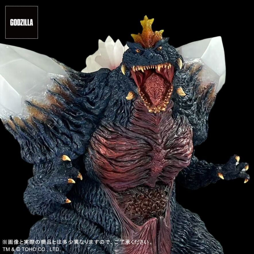 在極巨尺寸下,異形般的胸腹部、彷彿原版哥吉拉等四肢造型都刻畫出極為緻密的紋路細節,展開血盆大口的兇惡頭部更雕塑出凌亂的尖牙、給人外星生物意象的舌頭紋路,展現符合「宇宙兇惡戰鬥獸」稱號的氣勢。頭部的角、雙肩巨大結晶與背鰭都使用透明零件為底進行塗裝,以細膩的色彩表現結晶的光澤感、過度到表皮的皮膜漸層色彩。