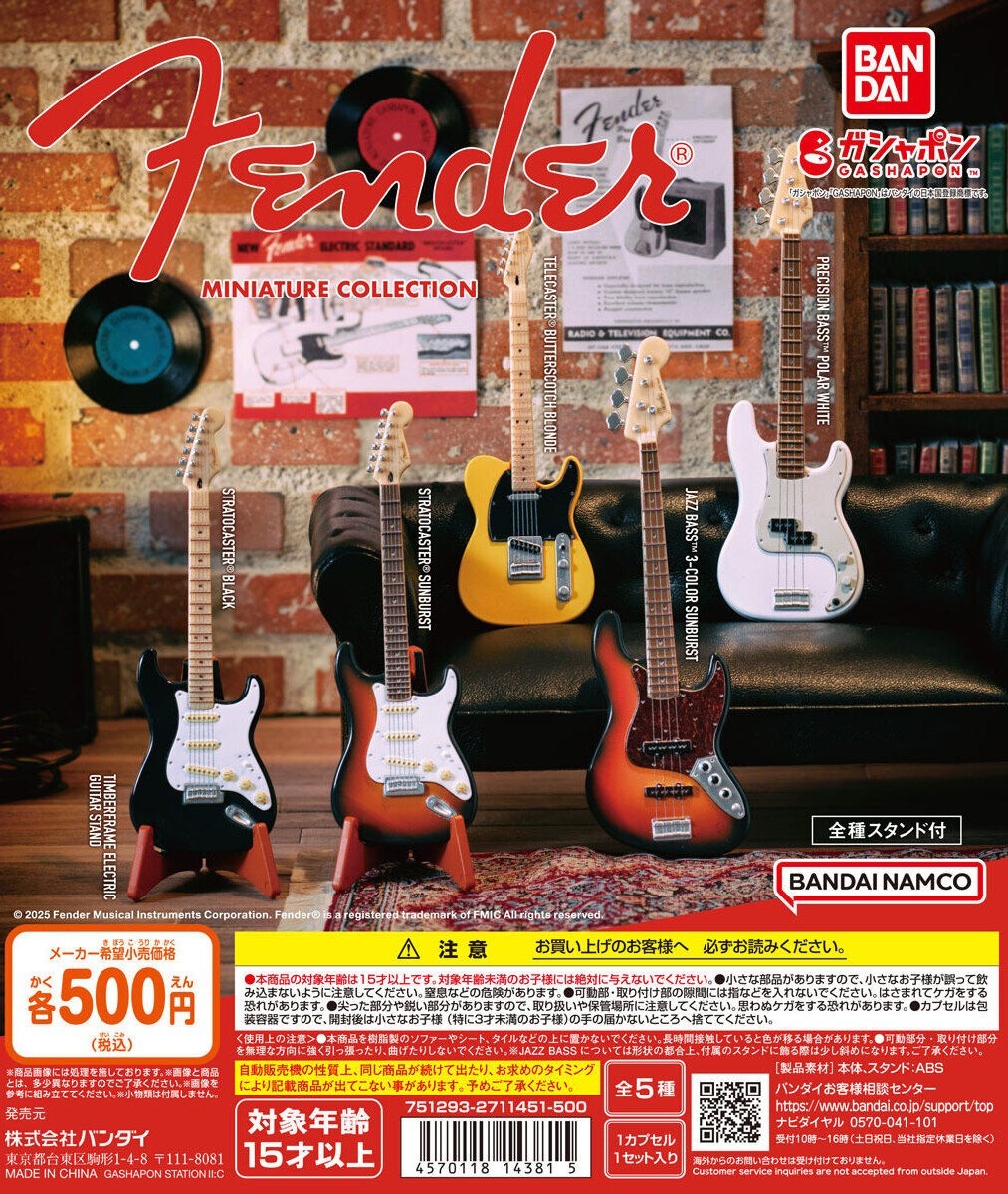日本萬代公司轉蛋玩具品牌 GASHAPON 與樂器大廠 Fender 攜手,推出了最新商品:「Fender Miniature Collection」微縮轉蛋!參考售價為一轉 500 日圓,共有 5 種款式,預計於 2025 年 02 月下旬開轉~