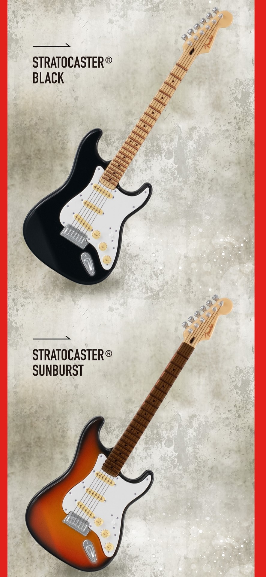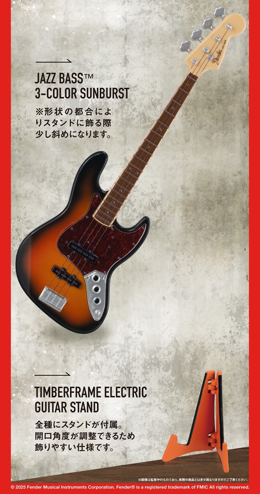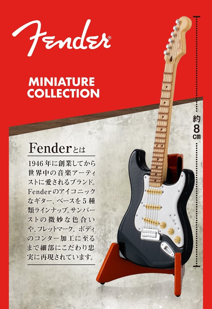 「Fender Miniature Collection」迷你轉蛋,將 Fender 旗下標誌性的電吉他和貝斯以1/12比例的轉蛋小巧尺寸微縮再現,收錄有:STRATOCASTER® BLACK、STRATOCASTER® SUNBURST、TELECASTER® BUTTERSCOTCH BLONDE、PRECISION BASS™ POLAR WHITE、JAZZ BASS™ 3-COLOR SUNBURST五款,除了琴頭上的旋鈕和拾音器等細節精緻地刻劃,琴身的塗裝也相當逼真!所有款式都配有支架,可以用以展示,也能搭配1/12比例玩偶賞玩!