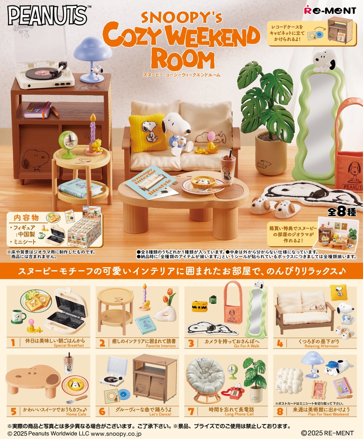 擅長打造精緻配件與迷你模型的日本 RE-MENT 玩具公司今(4)日發表了多款新作,本篇將帶來一直以來都擁有滿滿大人氣的史努比主題新作「史努比的愜意假日房間」(SNOOPY‘s COZY WEEKEND ROOM)盒玩!預計在 2025 年 5 月 26 日開始發售,建議售價為每款 900 日幣,一共有 8 種款式可以收集。